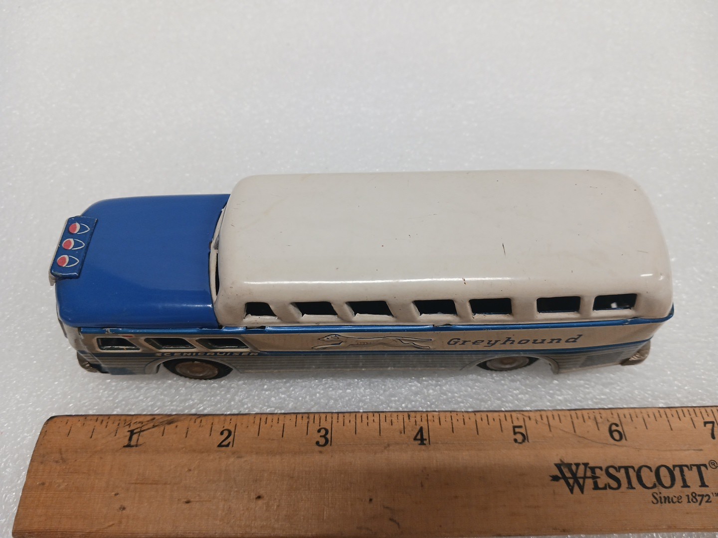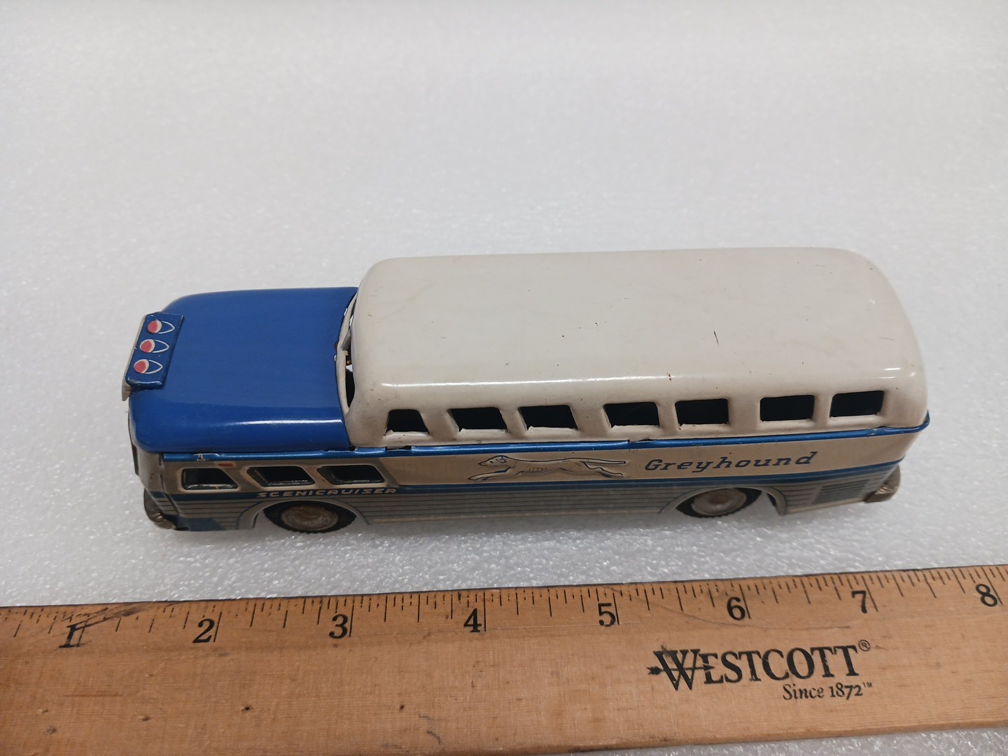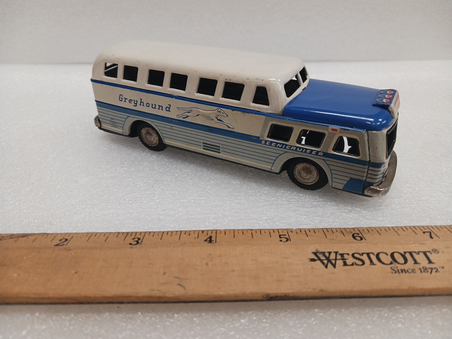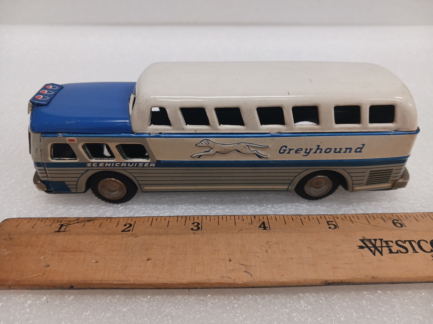 Vintage SSS TIN FRICTION GREYHOUND BUS TIN TOY SCENICCRUISER TIN TOY LOT