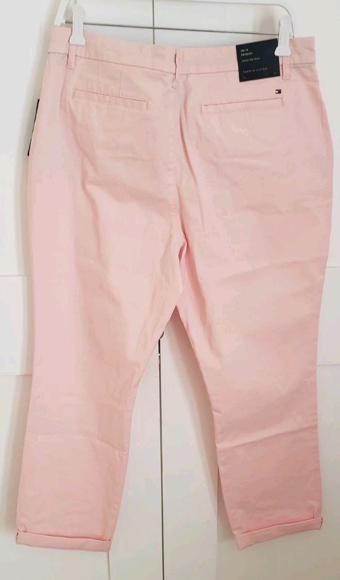 как выглядит NWT TOMMY HILFIGER CUFFED HAMPTON CHINO STRETCH SLIM PANTS PINK SZ 12 фото