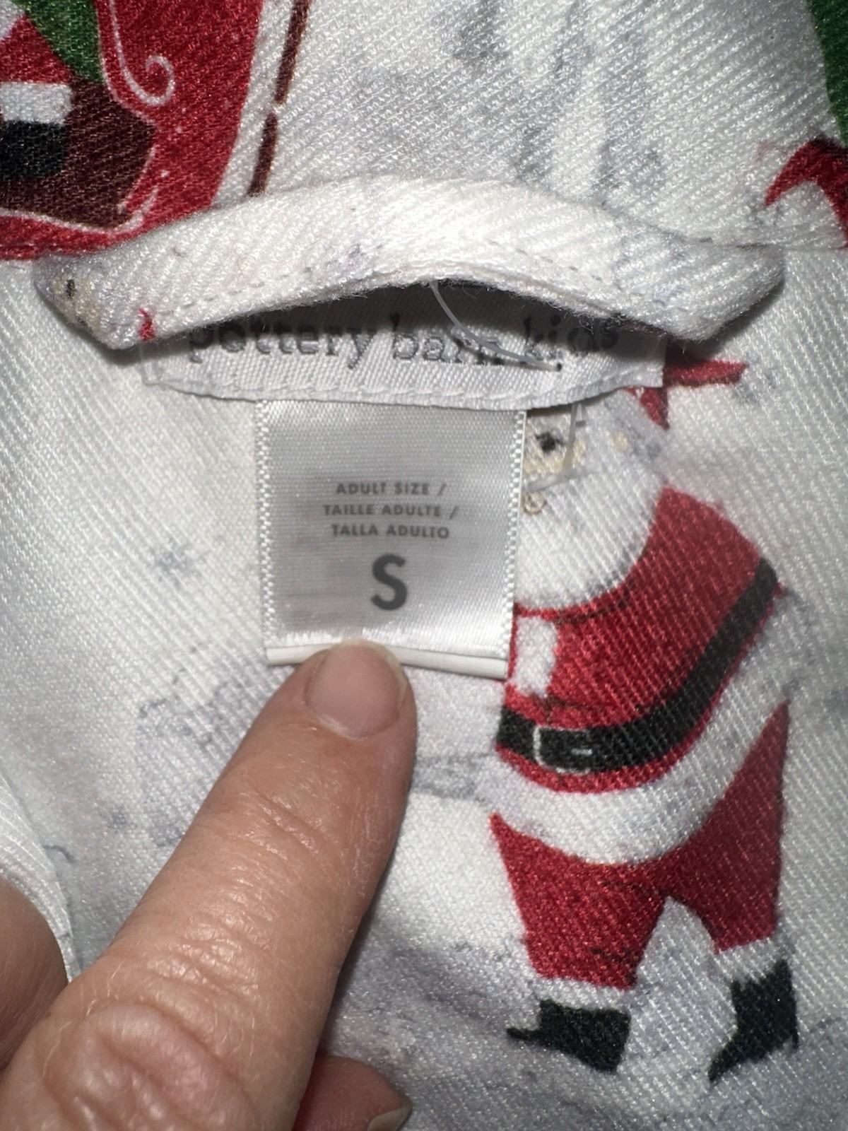 как выглядит Pottery Barn Kids HERITAGE SANTA Adult SMALL FLANNEL PAJAMAS 2 pc Holiday Xmas фото