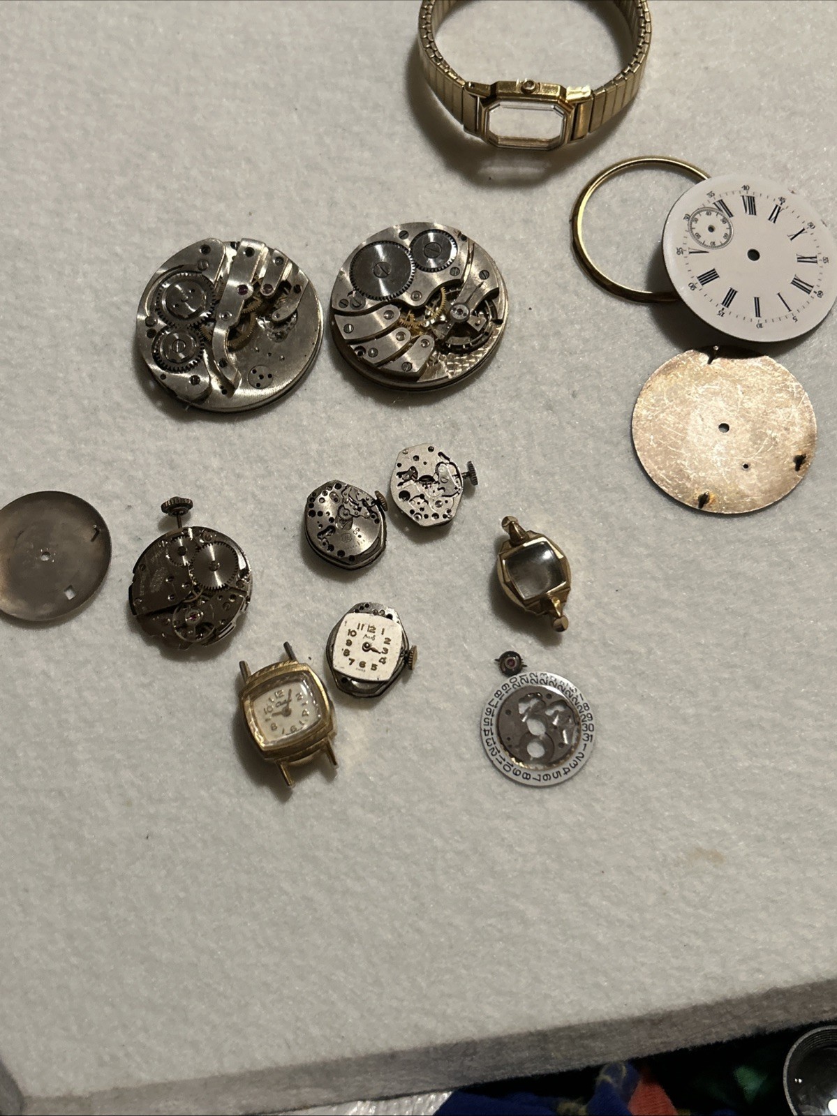 как выглядит Antique Buren Pocket Watch Movement With Other Swiss Watches Lot фото