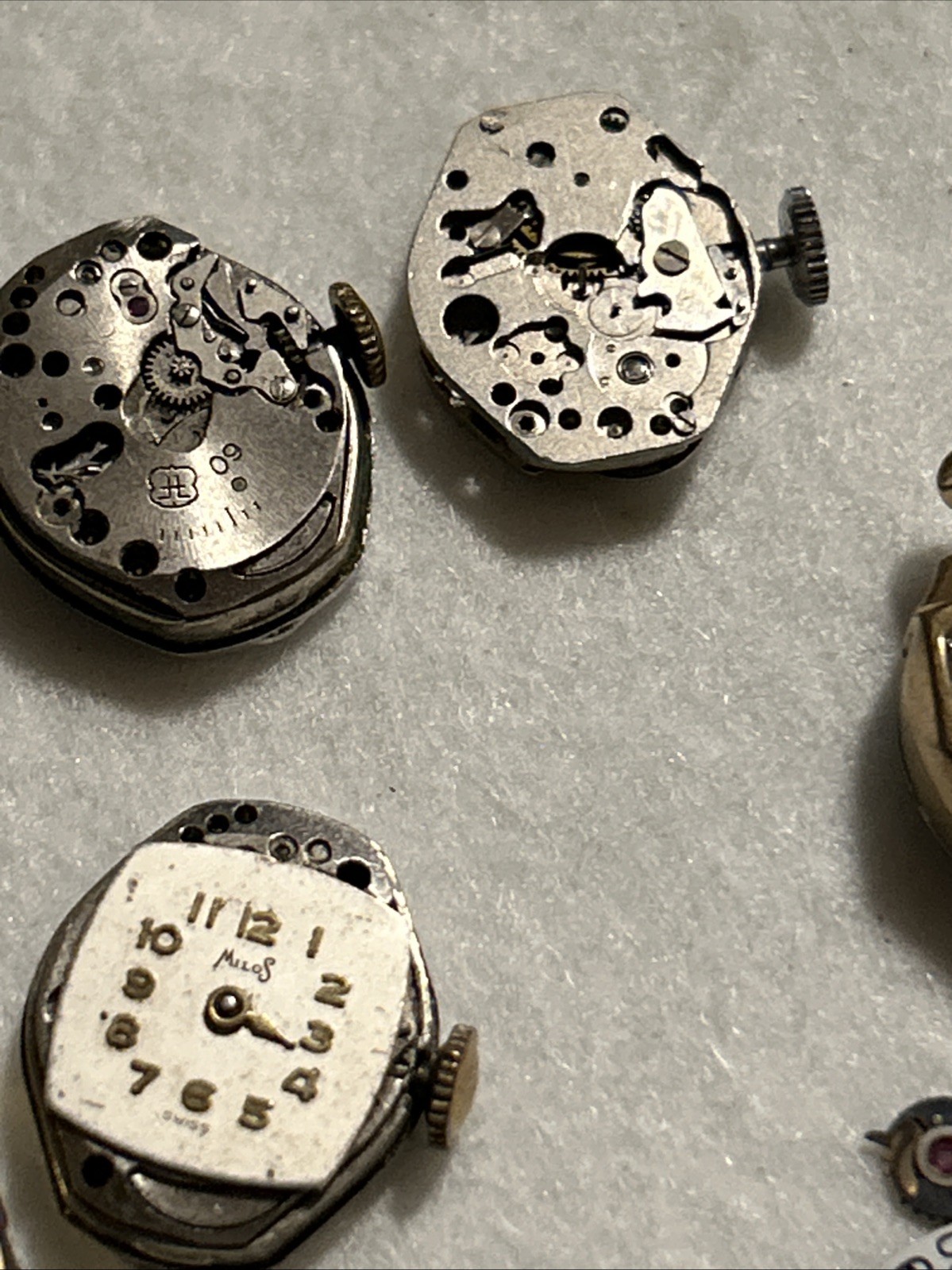 Antique Buren Pocket Watch Movement With Other Swiss Watches Lot