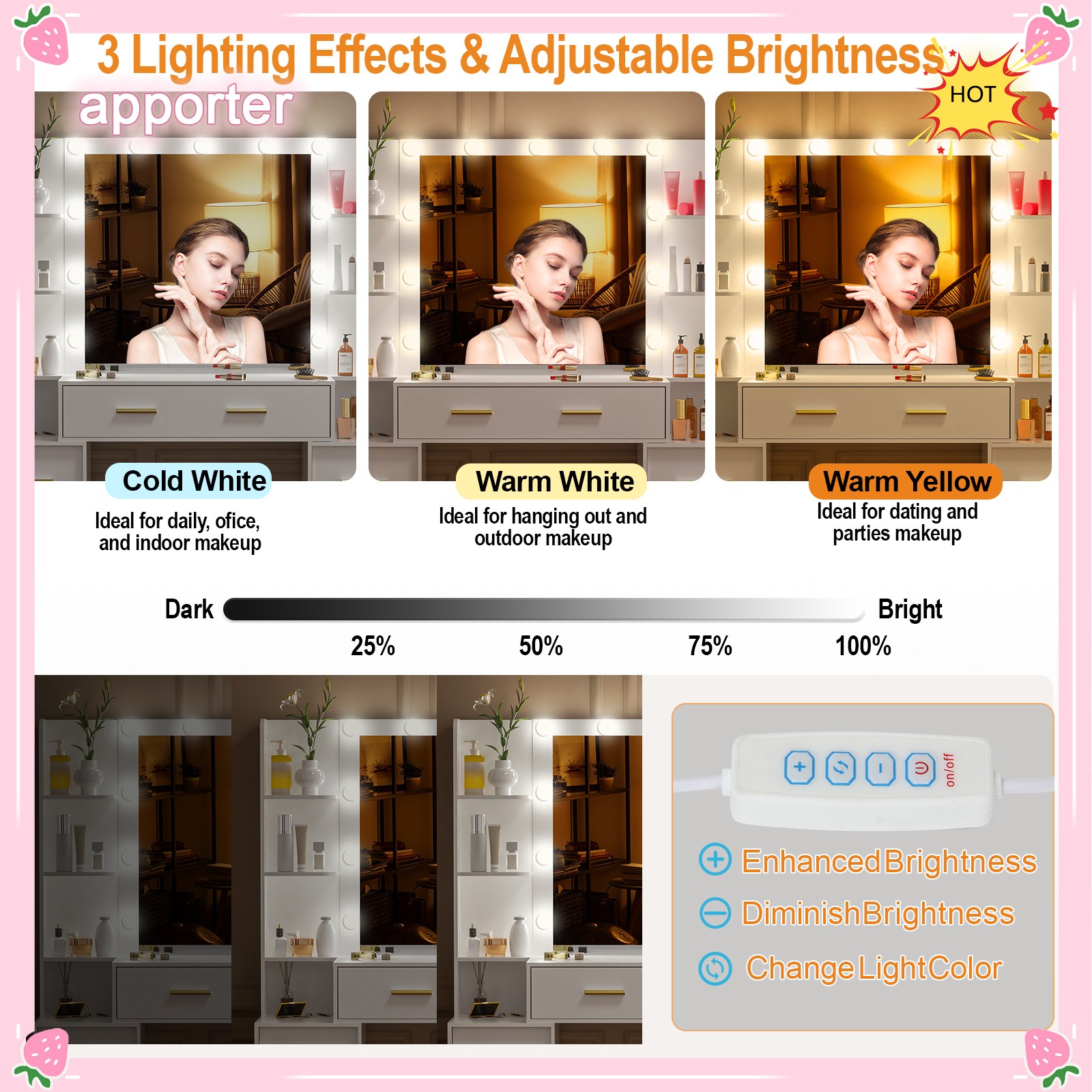 Vanity Desk with 11 LED Lighted Mirror, Makeup Dressing Table w/ 7 Drawers White