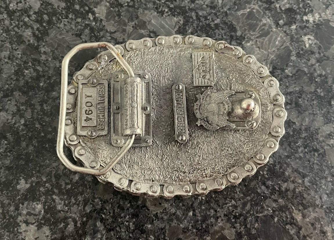 VINTAGE 1982 V TWIN MOTOR HARLEY INDIAN MOTORCYCLE CHOPPER BELT BUCKLE