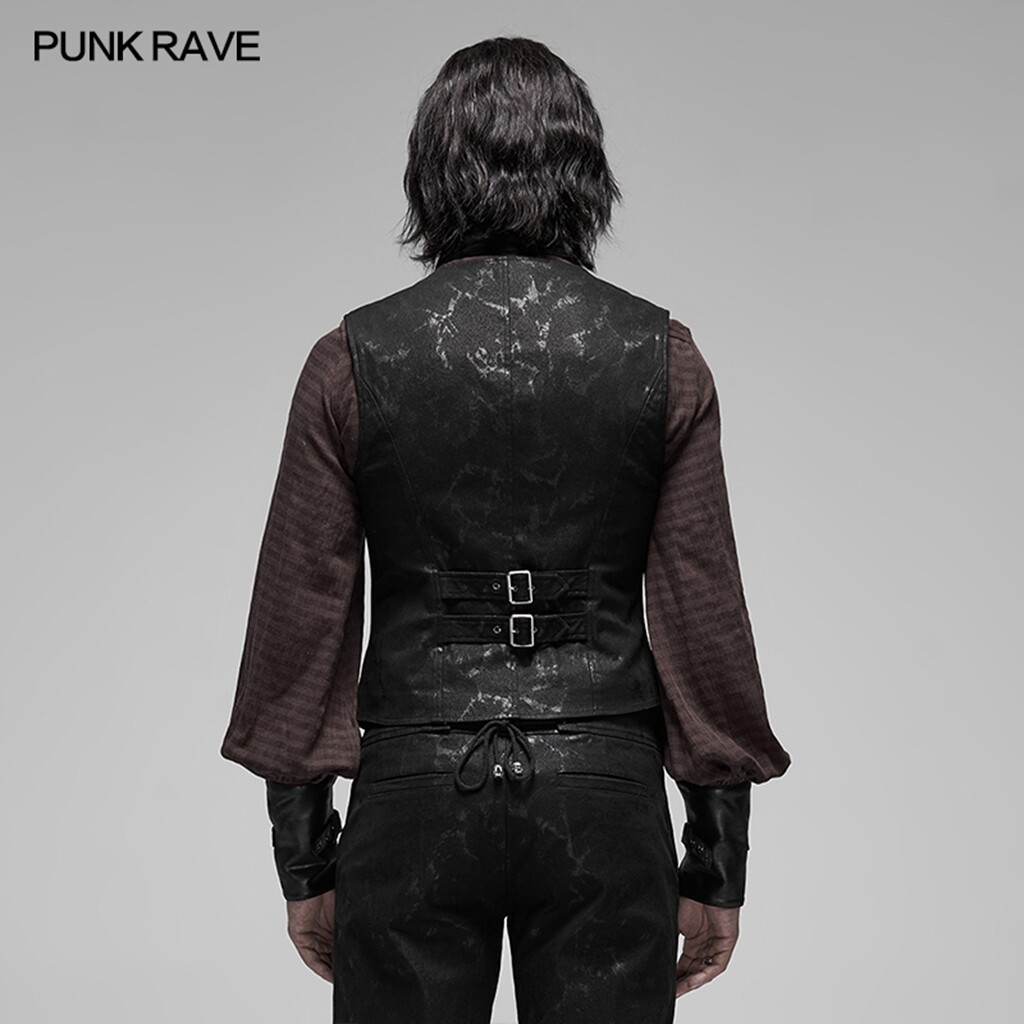 PUNK RAVE Men Steampunk Slim Vests Irregular Hem Sleevelss Goth Short Waistcoat