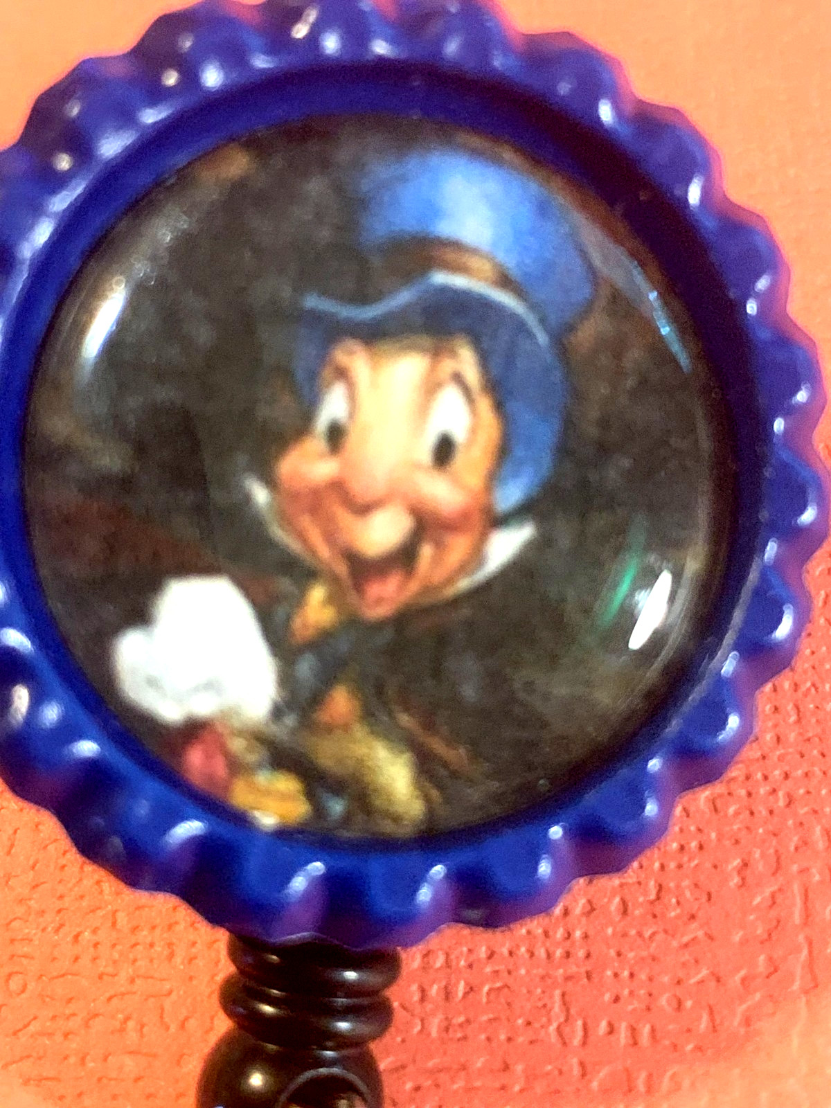 Id badge holder retractable alligator clip Disney Pinocchio Jiminy Cricket