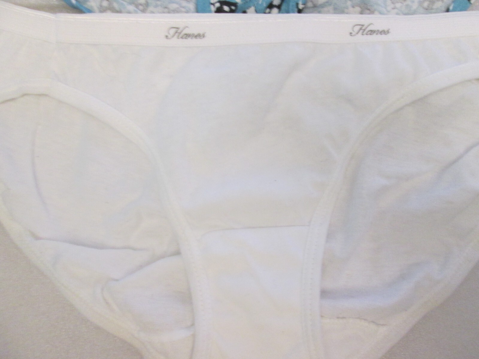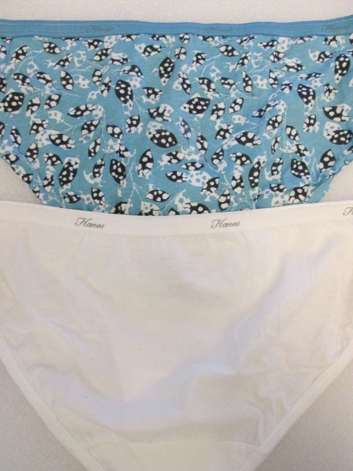 New 2 Ladies Hanes 100 Cotton Bikini Panties 5 / S White Blue Print