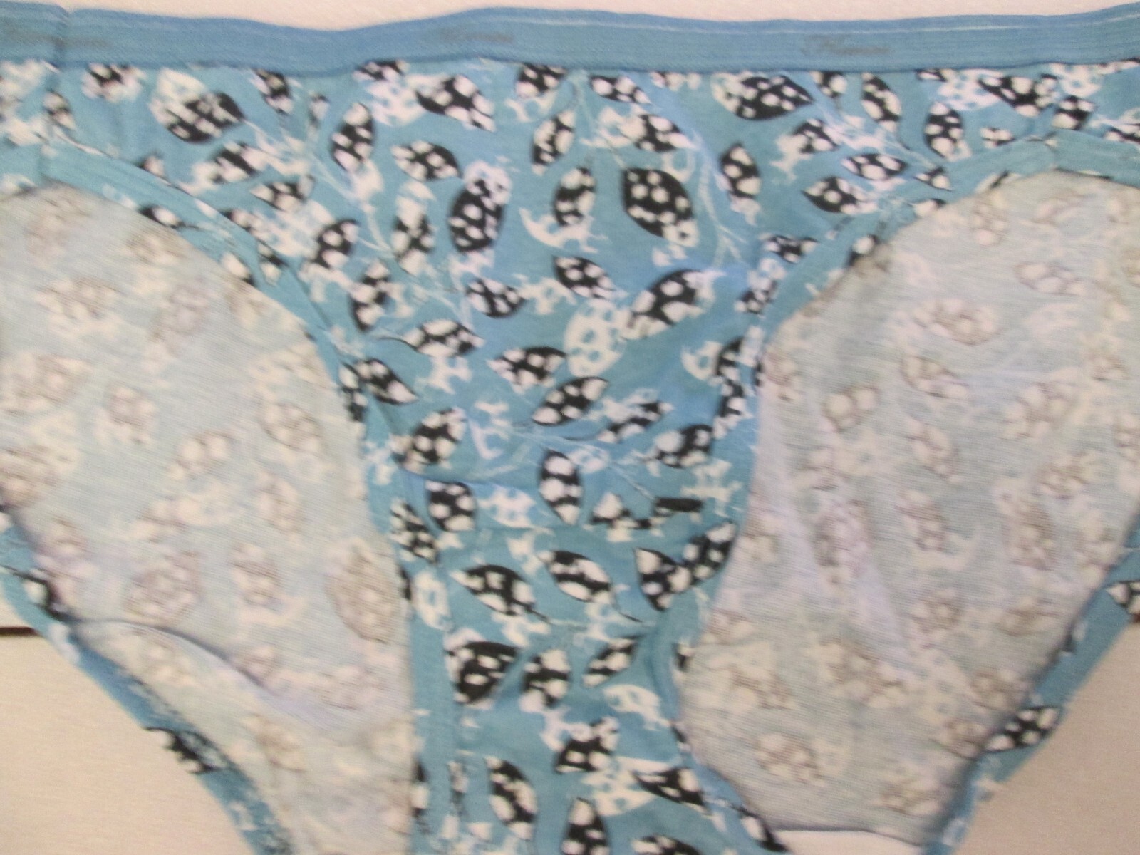 как выглядит New 2 Ladies Hanes 100 Cotton Bikini Panties 5 / S White Blue Print фото