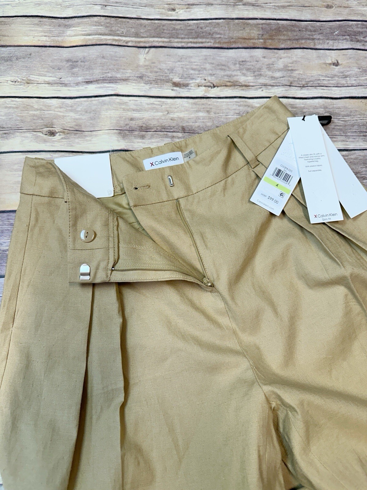 как выглядит Calvin Klein Women s Linen Blend Pleated High Waist Wide Leg Pants Biscotti 4 фото