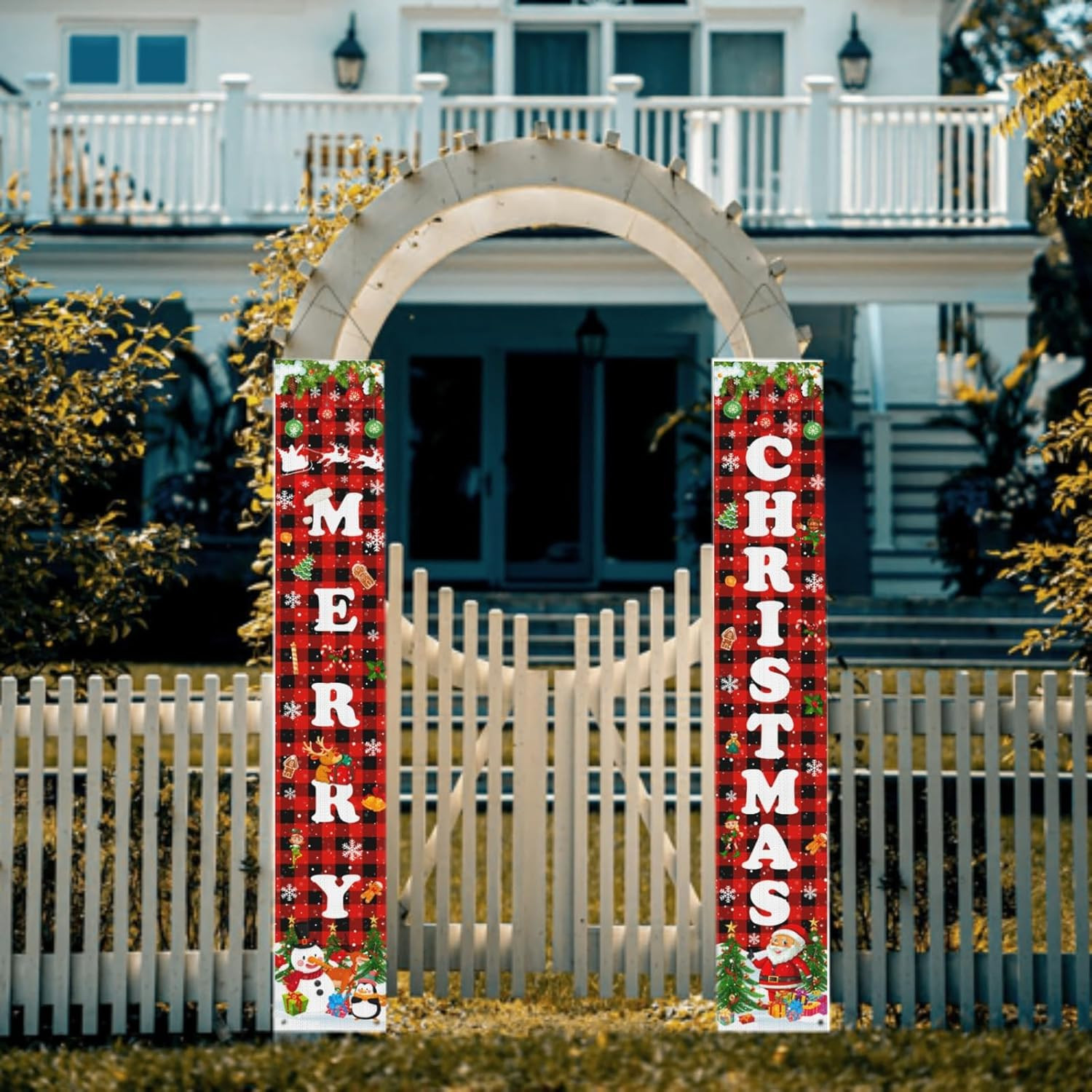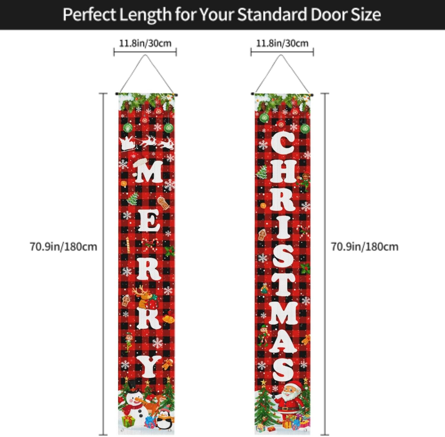 Christmas Porch Sign Santa Claus Reindeer Vertical Banners Outdoor Decorations B