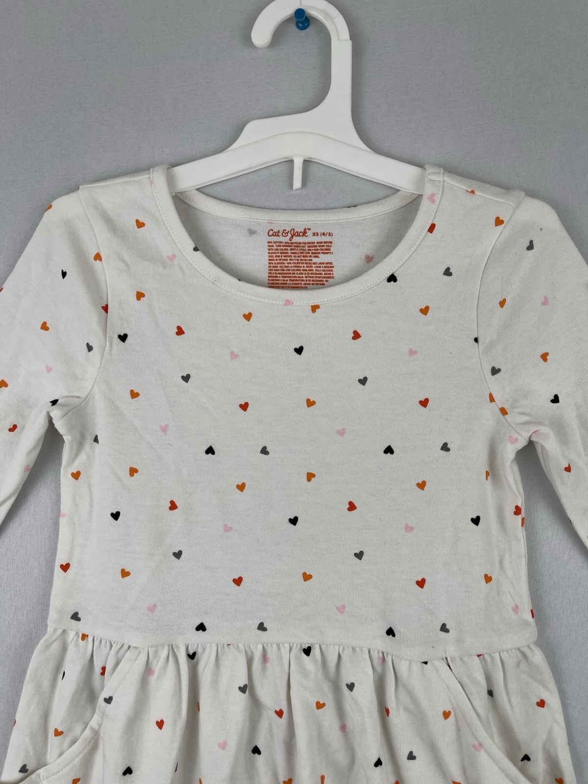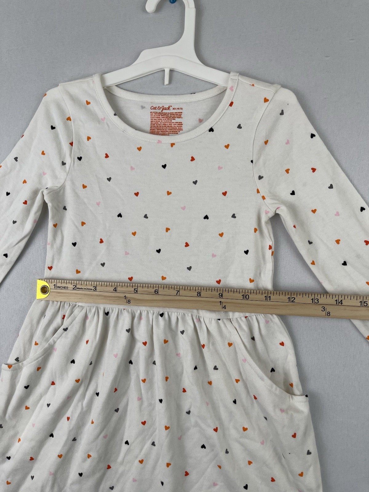 Cat Jack Girls Cotton-Blend Pullover Dress - Cream Heart Print Size XS 4/5