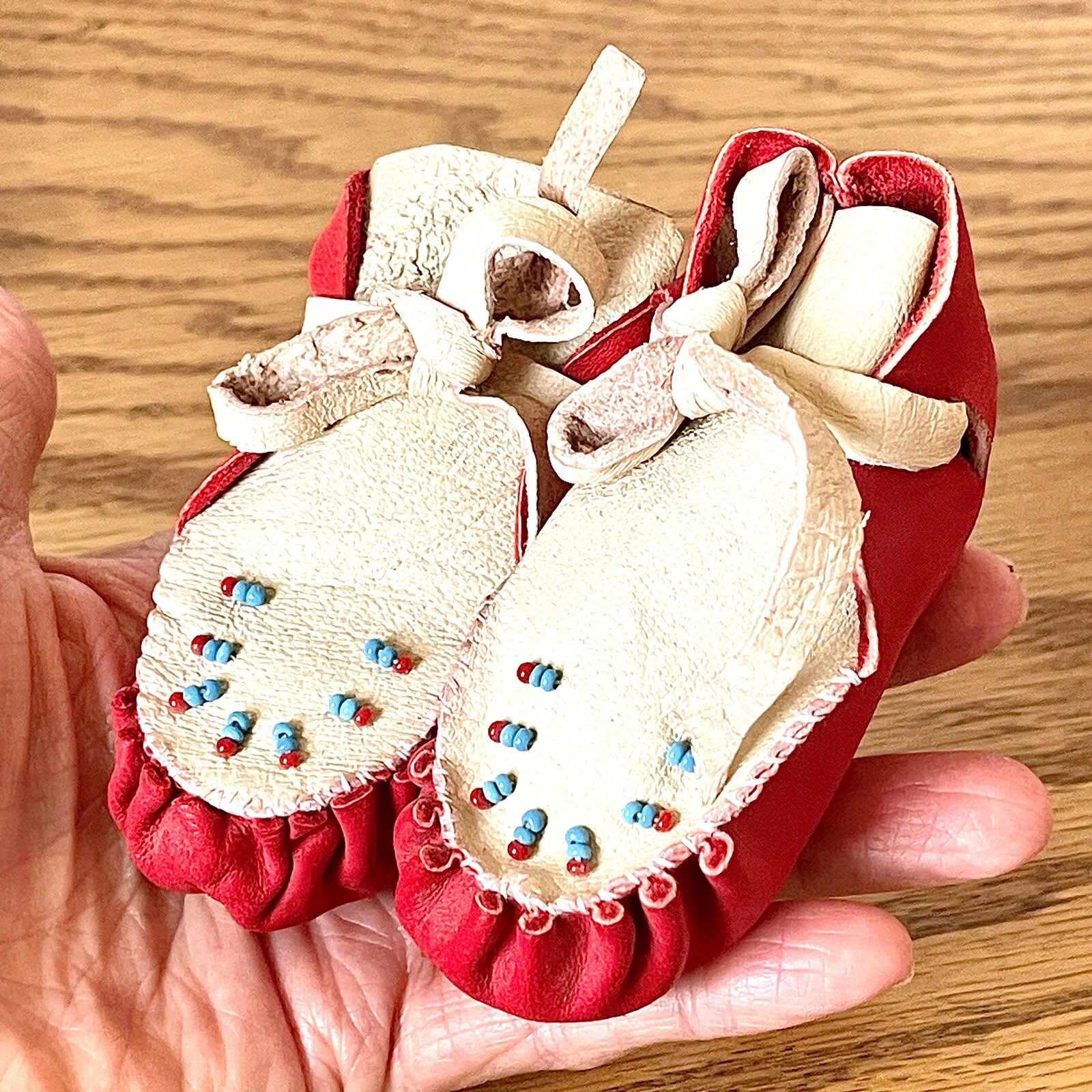 • VTG Navajo Baby Moccasins Handmade 50s Deer Skin Leather Sz 0 Beaded Red Booties