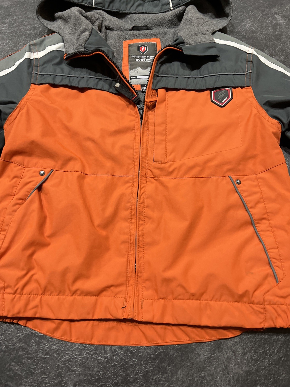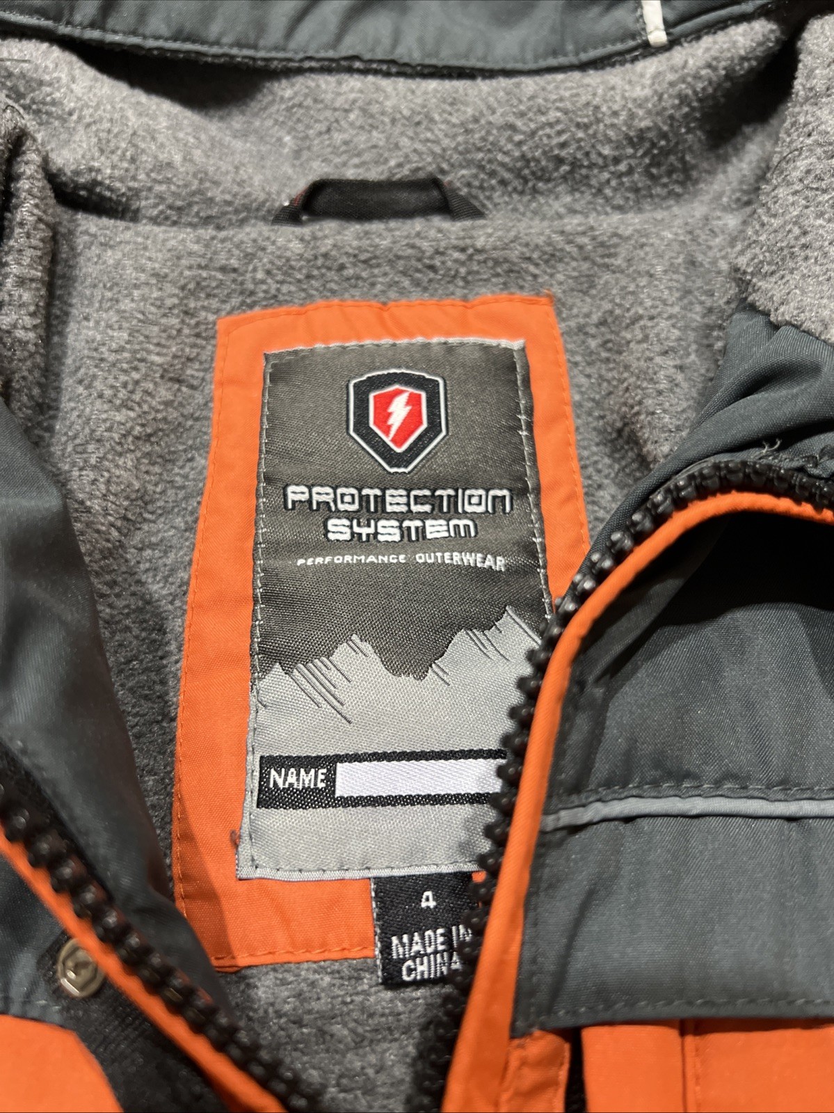 Protection System Boys Winter Jacket Hooded Coat Orange Gray Fleece Line Size 4