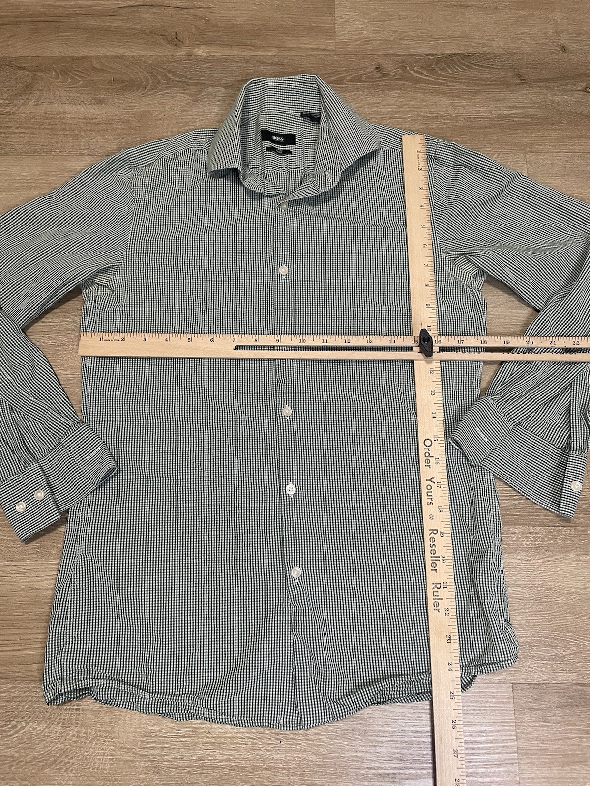 как выглядит BOSS Hugo Boss Shirt Mens Sz 15 32 Slim Fit Plaid Button Down Long Sleeve Green фото