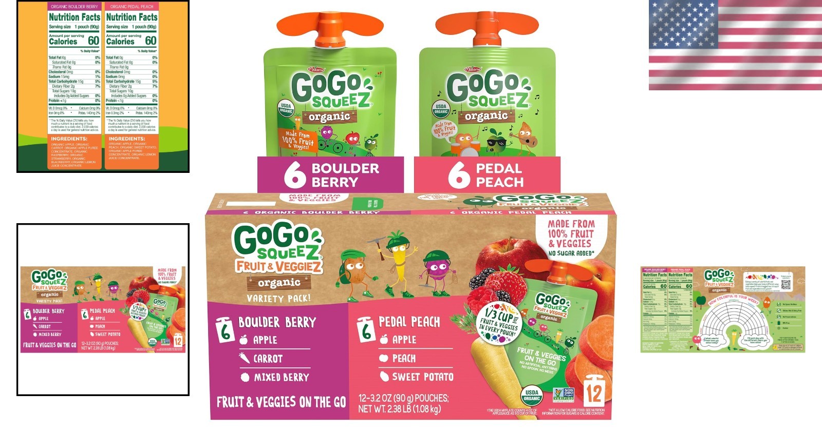 как выглядит Organic Fruit VeggieZ Snack Pouches Variety Pack - 12 Pouches, 3.2 oz Each фото