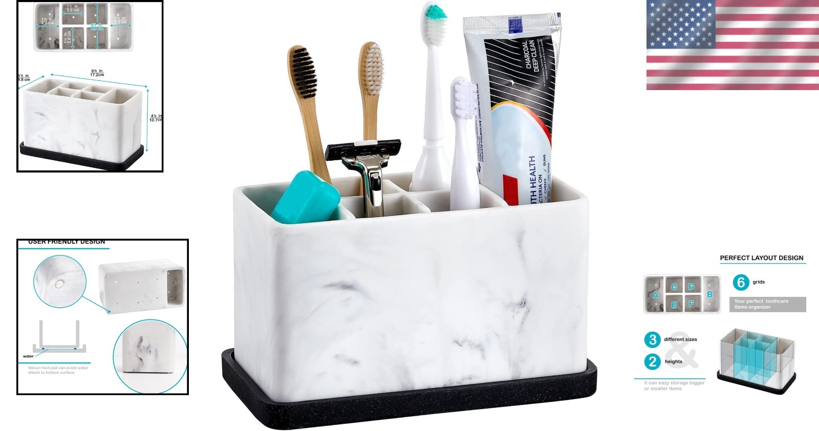 как выглядит Sleek Marble Design Bathroom Toothbrush Holder with Drain Holes Bottom Tray фото