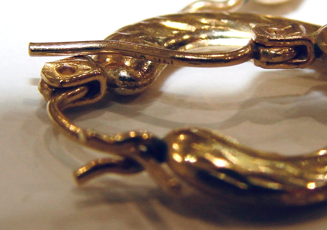 как выглядит 14K YELLOW GOLD HEART SHAPED ETCHED HOOP EARRINGS 1.25G фото