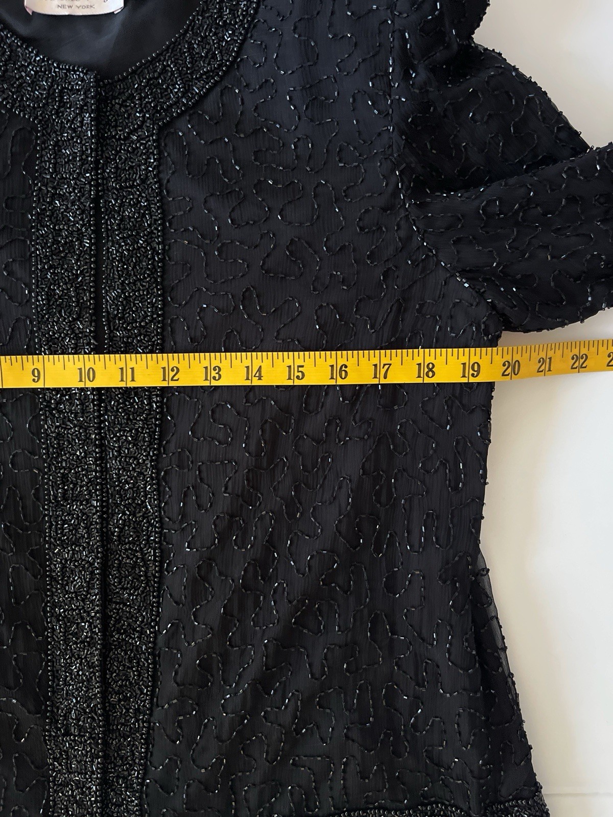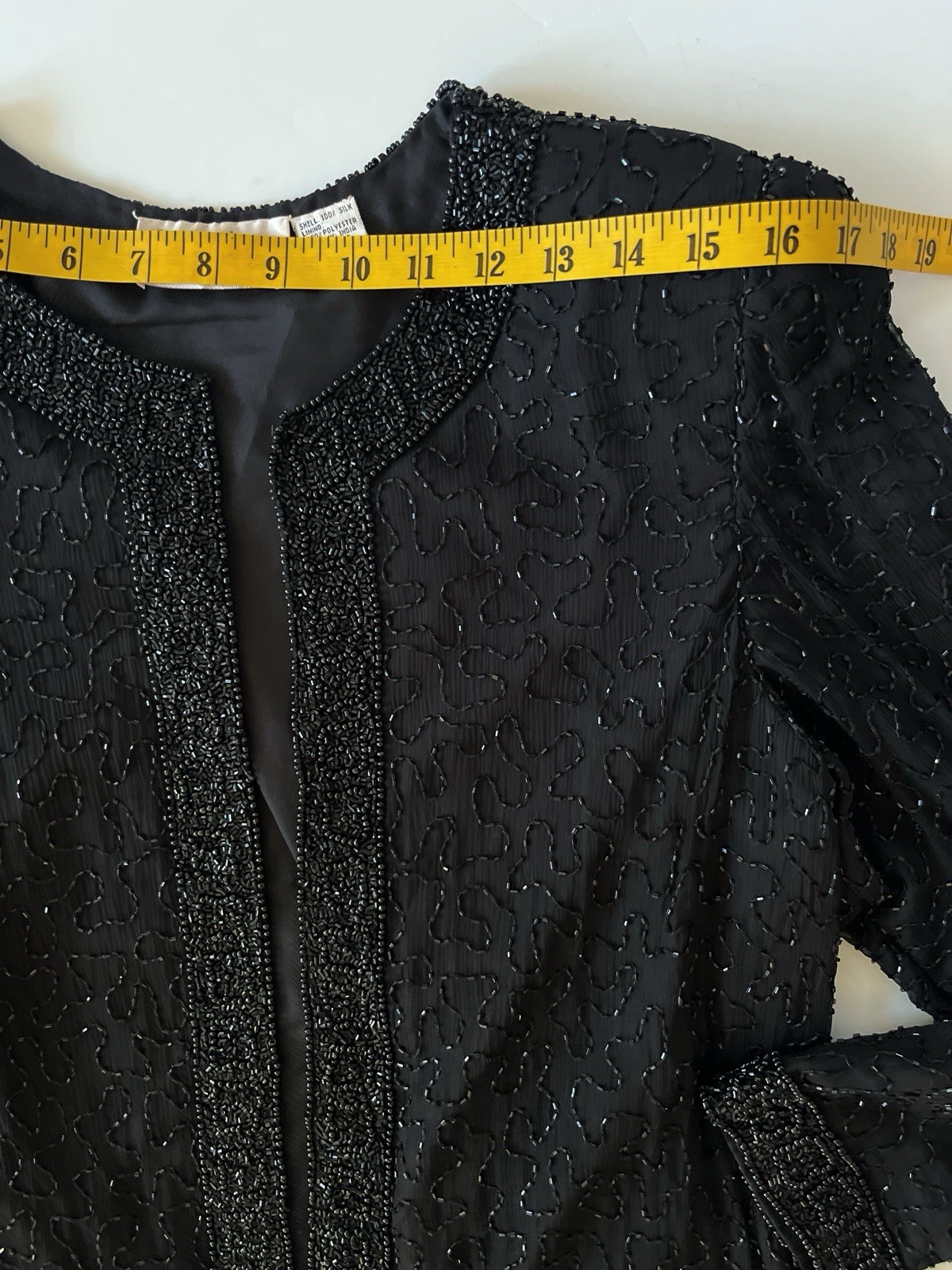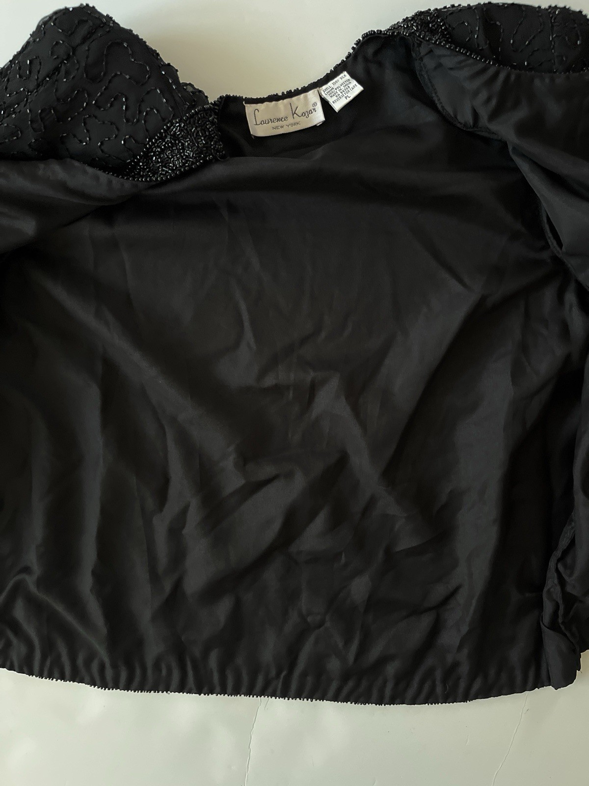 Vintage Laurence Kazar Silk Beaded Jacket Women PL Black Open Wedding Formal