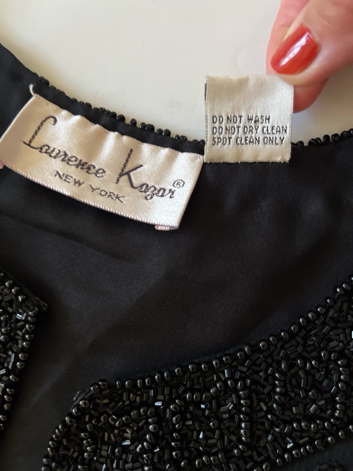 как выглядит Vintage Laurence Kazar Silk Beaded Jacket Women PL Black Open Wedding Formal фото