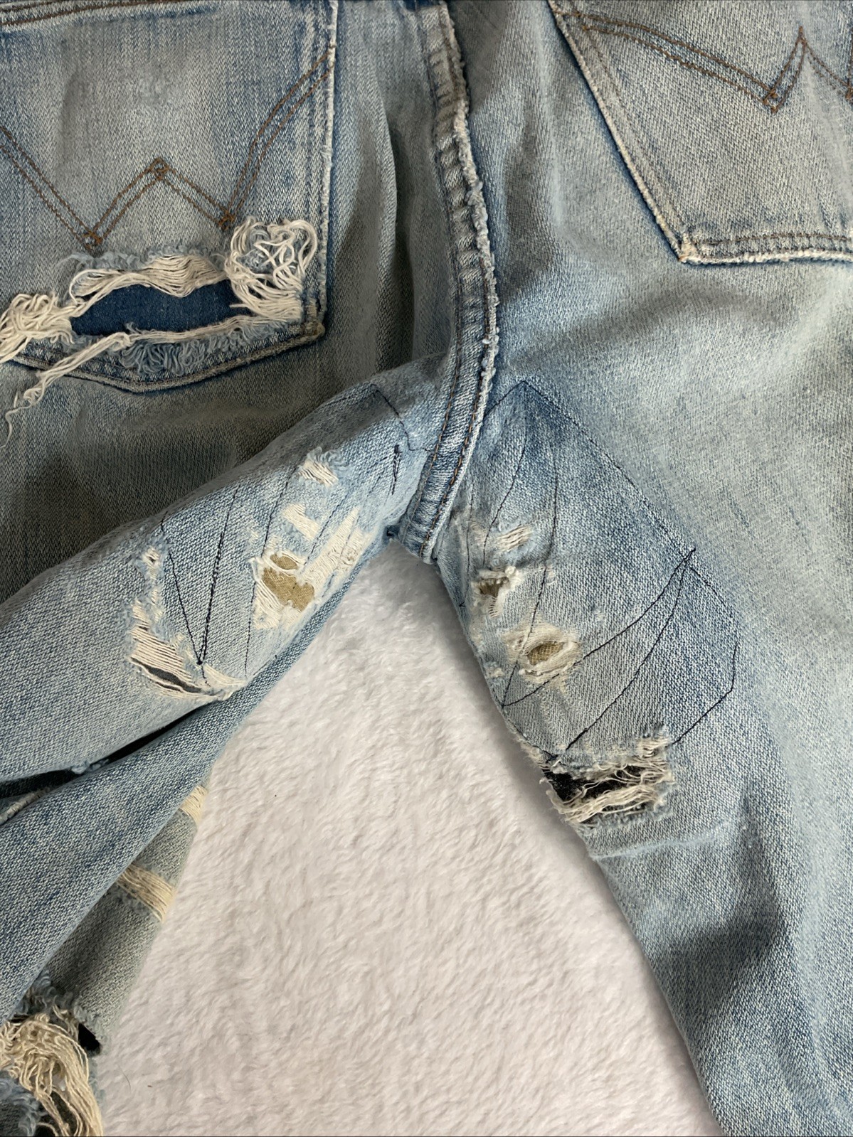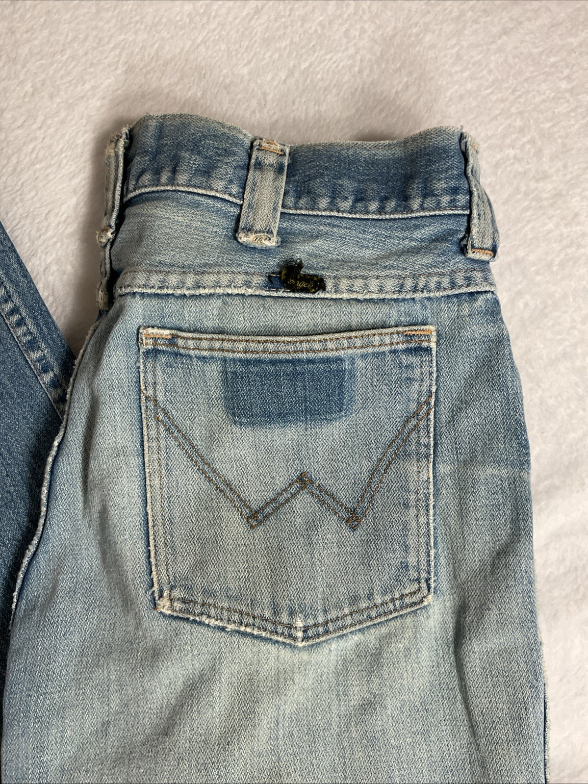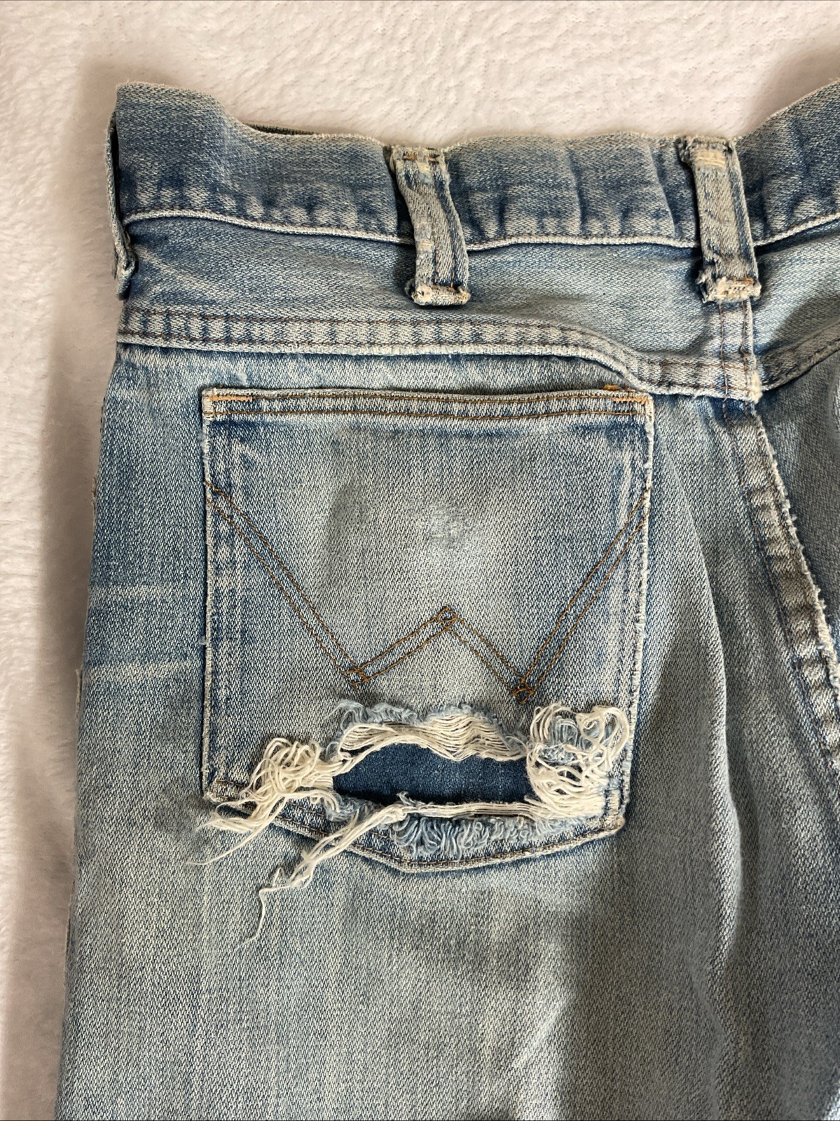 VTG 60s 70s Wrangler Bell Bottom Distressed Jeans Flare Pants Scovill Distressed