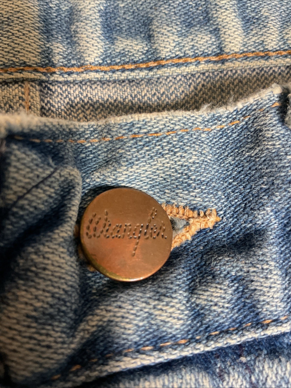 как выглядит VTG 60s 70s Wrangler Bell Bottom Distressed Jeans Flare Pants Scovill Distressed фото