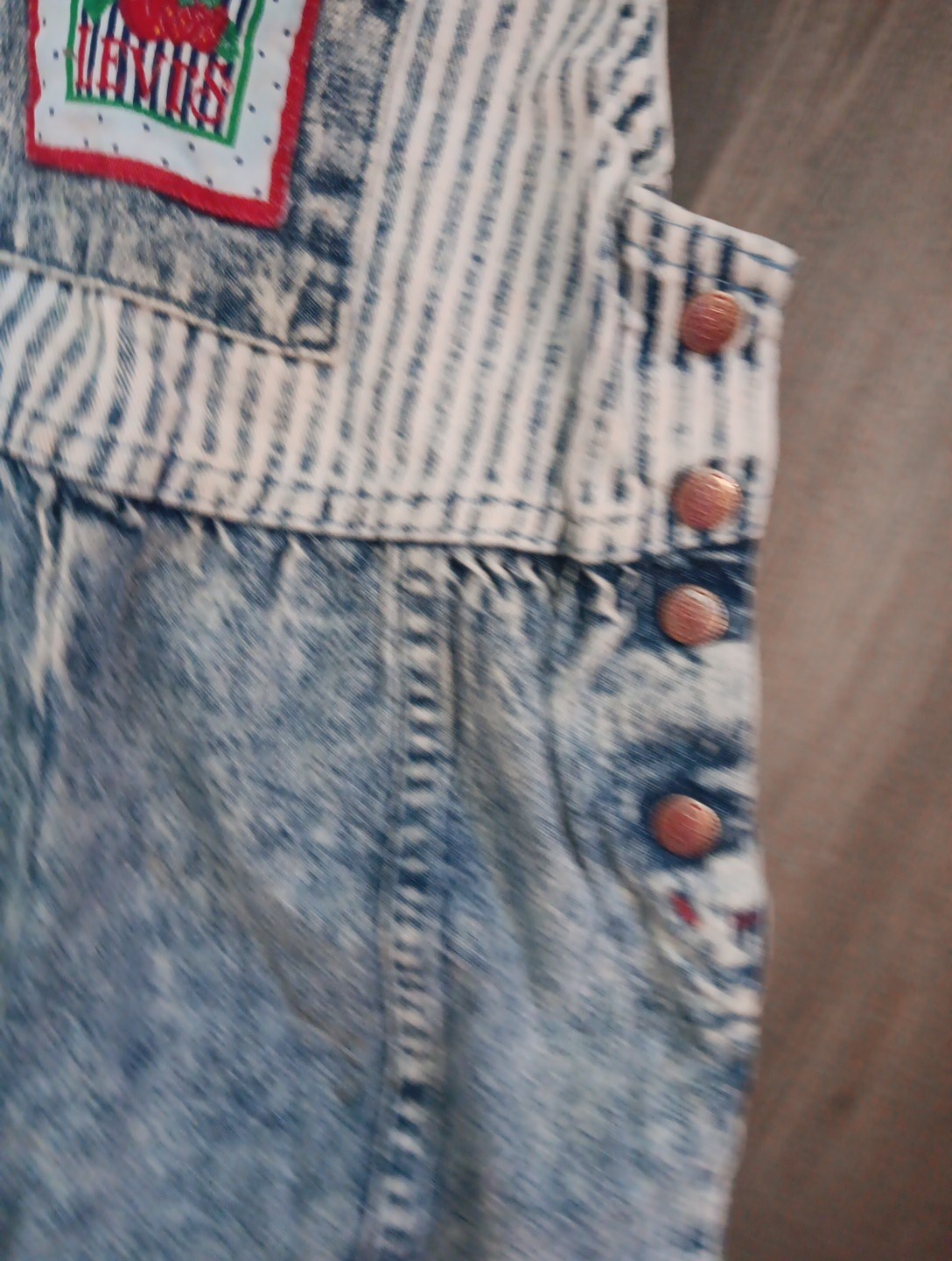 как выглядит Vtg Little Levi s Acid Wash Strawberry Denim Stripe Bubble Romper Overalls 3T фото