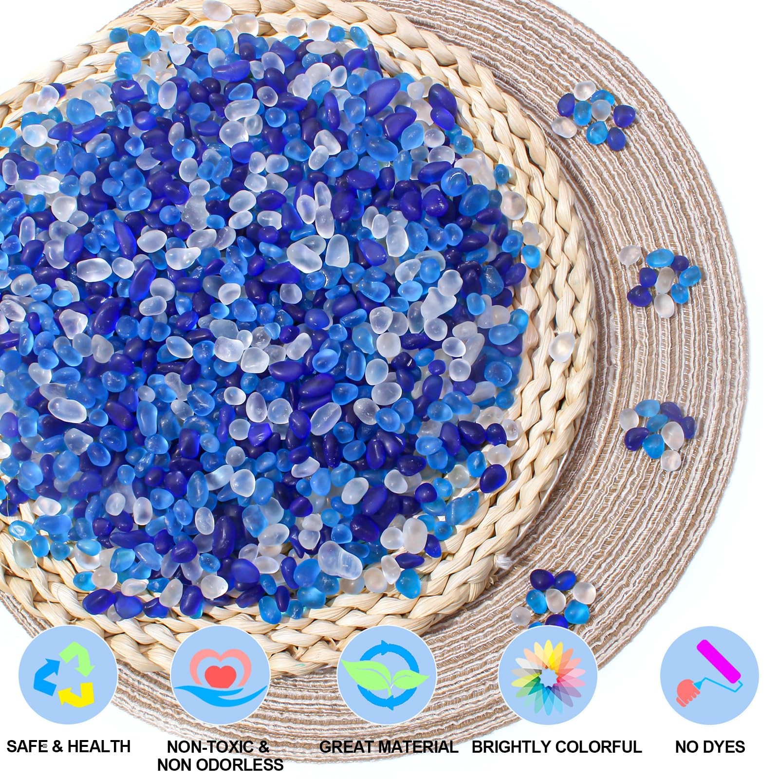 Colorful Blue Sea Glass Pebbles for Aquariums, Vases, Crafts, 6-9mm, 0.5 Lb