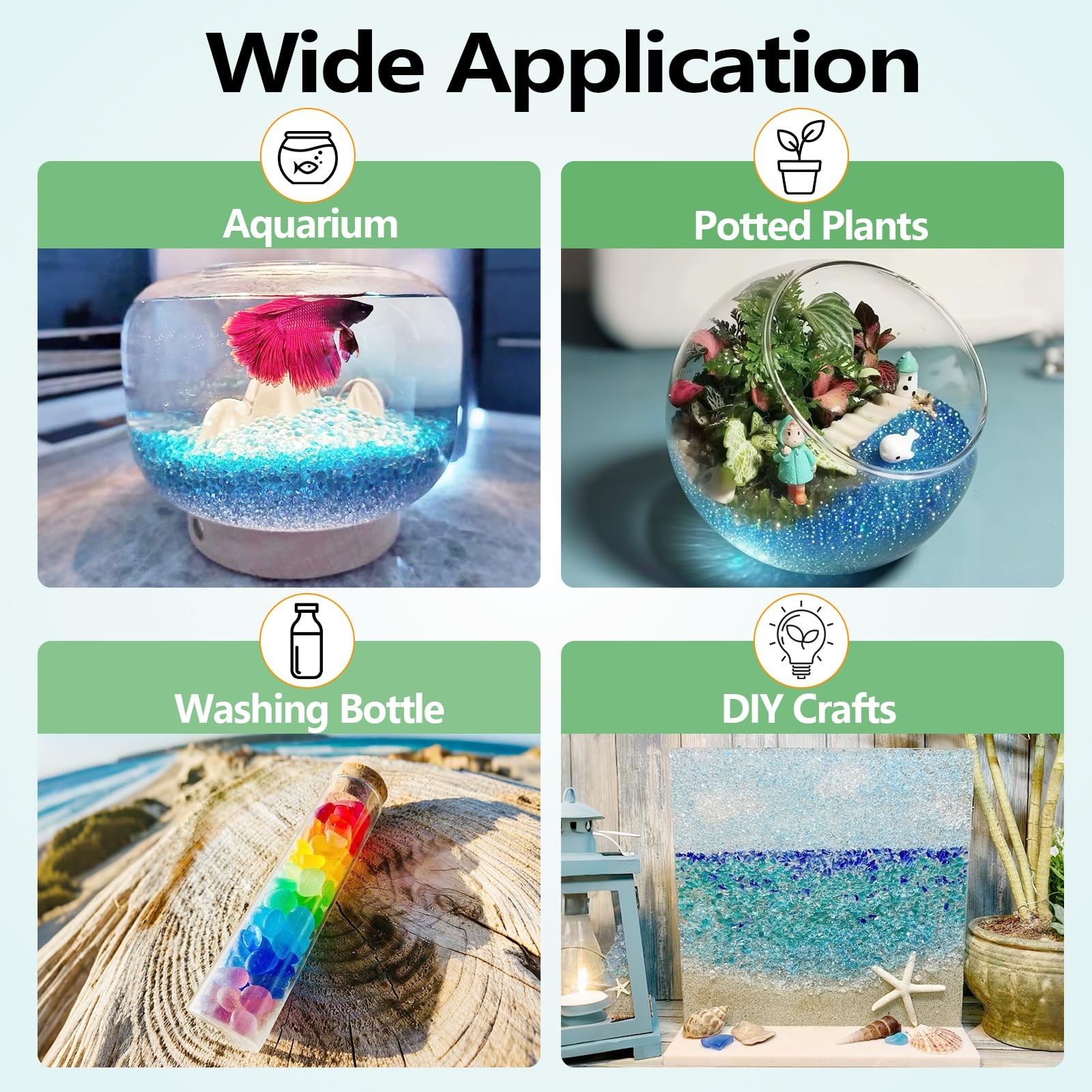 • Colorful Blue Sea Glass Pebbles for Aquariums, Vases, Crafts, 6-9mm, 0.5 Lb