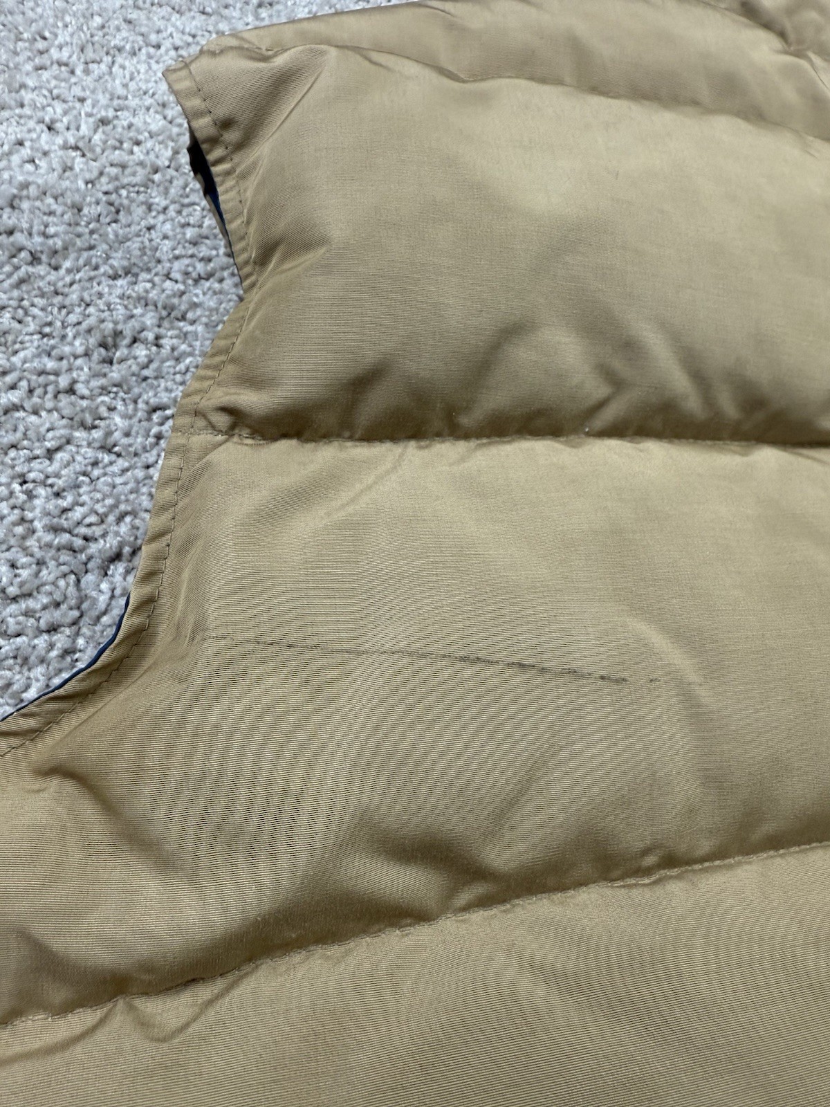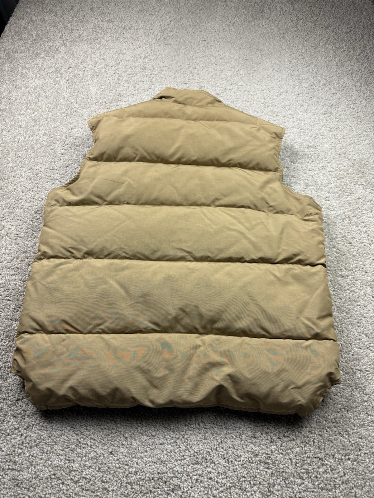 как выглядит VINTAGE Woolrich Goose Down Vest Men Size Large Beige Puffer Jacket Snap USA фото