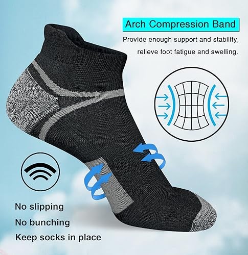 как выглядит Mens Athletic Cushioned Ankle Socks Comfort Wicking Anti 9-12 Black 5 Pairs фото