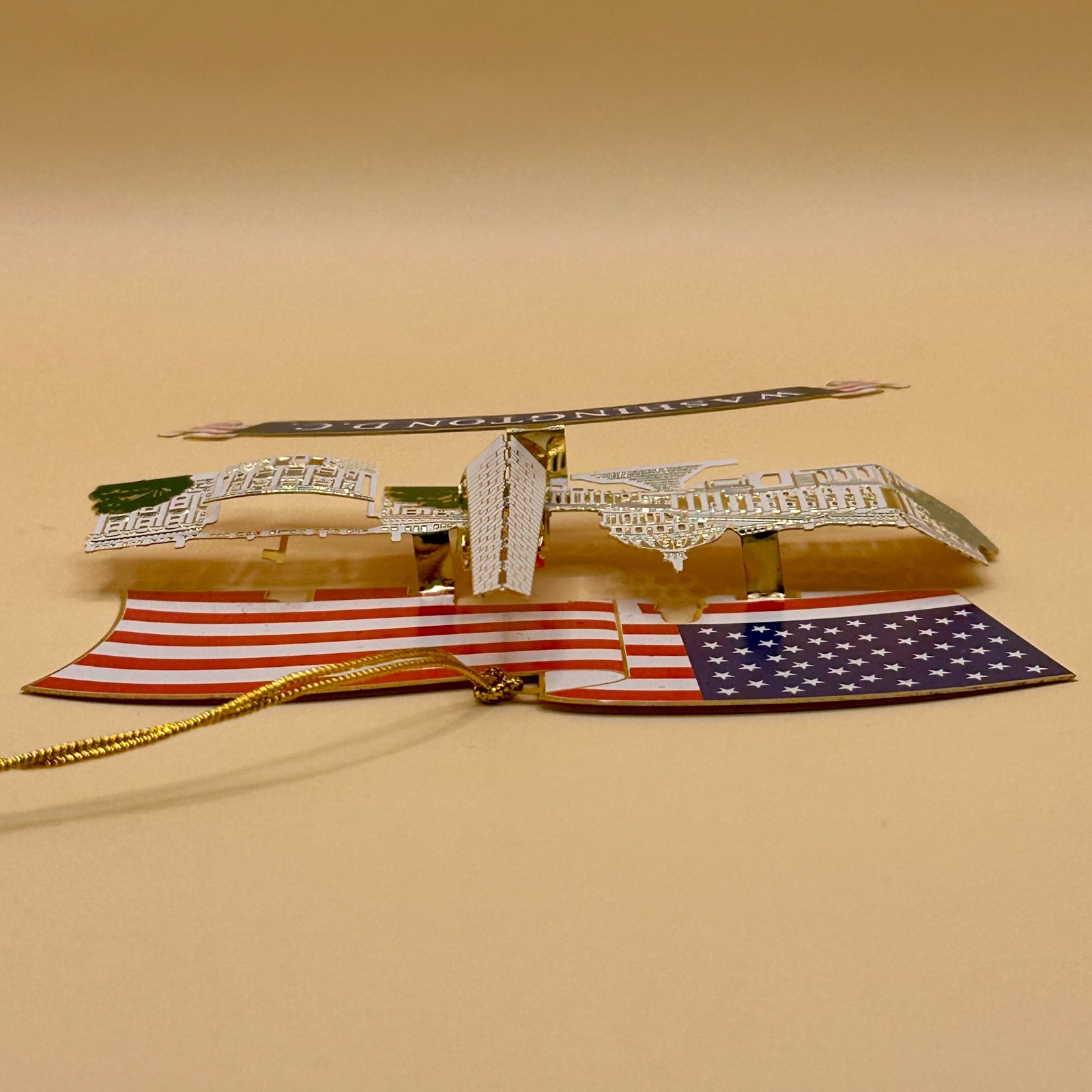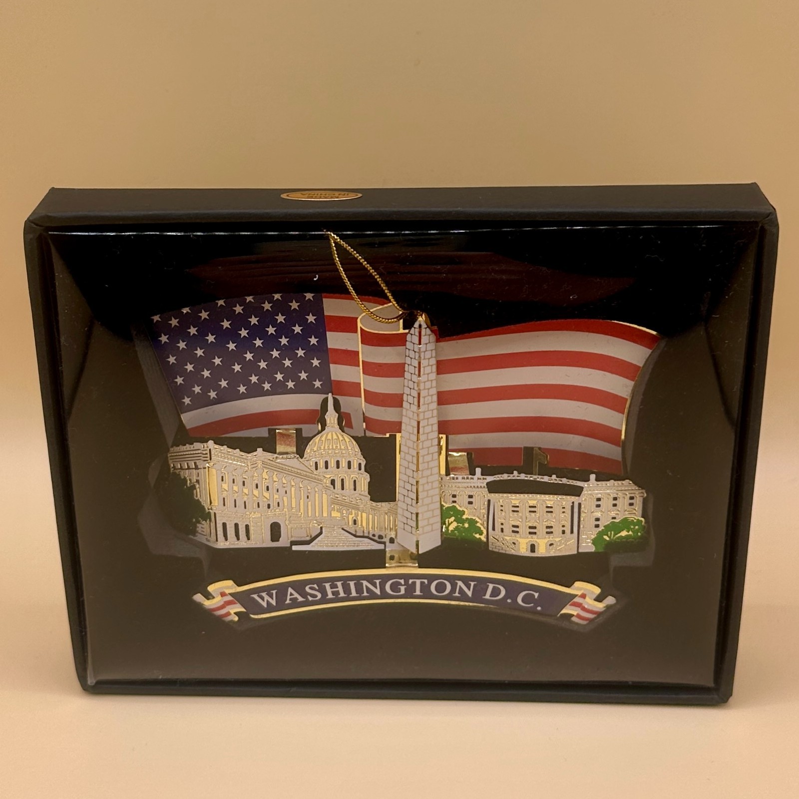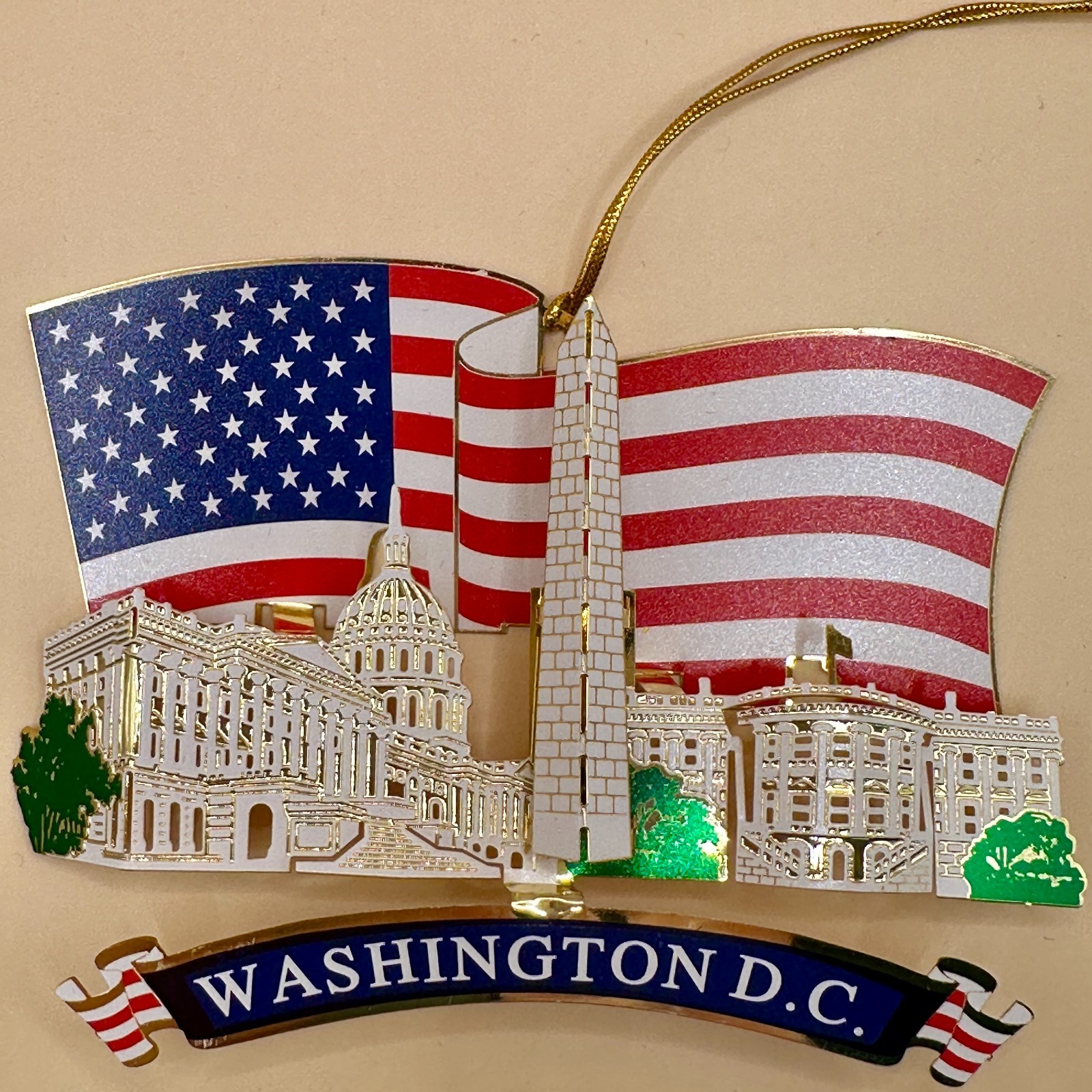 Washington DC Metal Christmas Ornament Holiday D cor Patriotic Flag 3 7/8 X 3