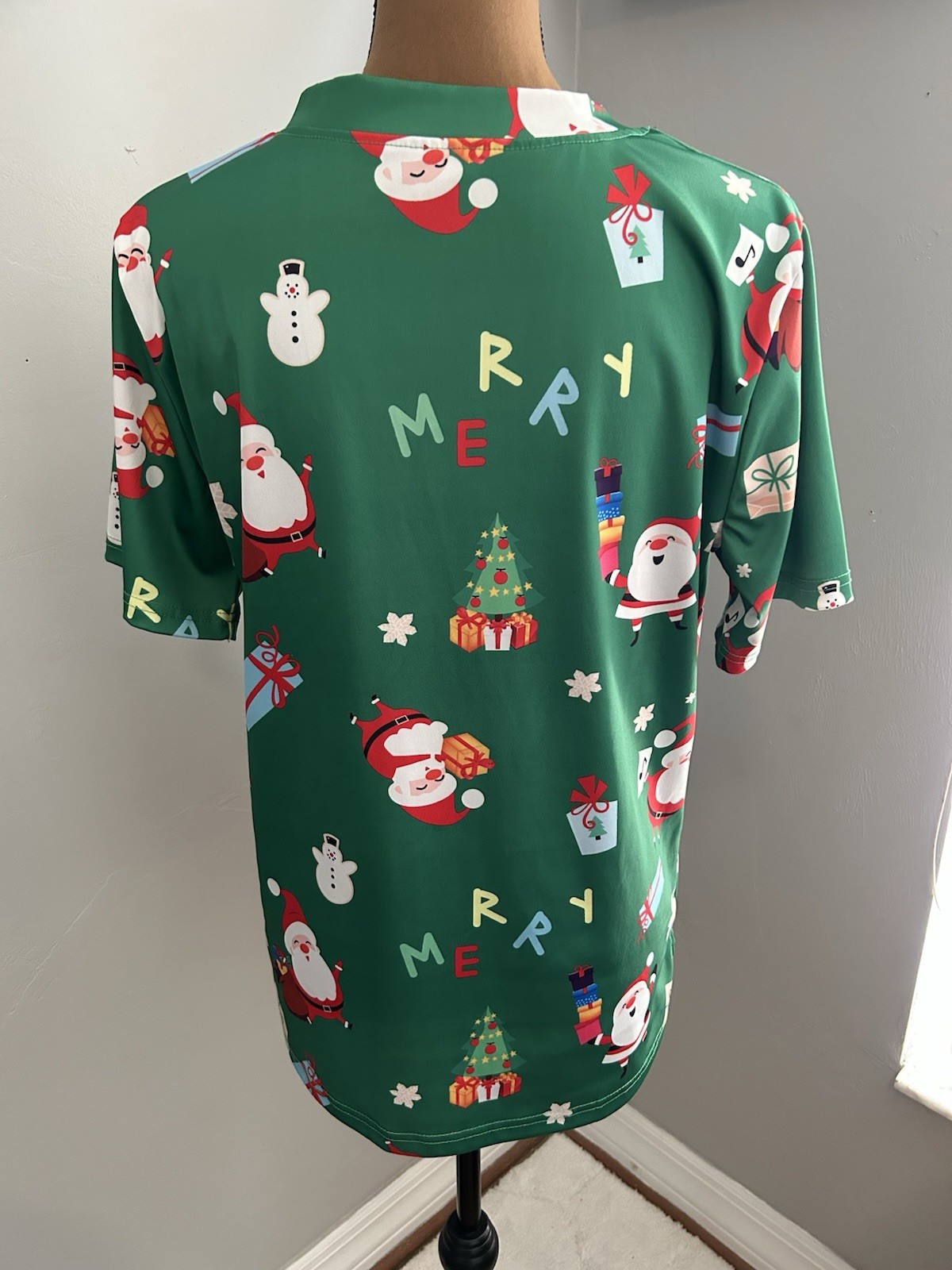 как выглядит Women s Green Santa Christmas Scrub Top Sz M/L фото