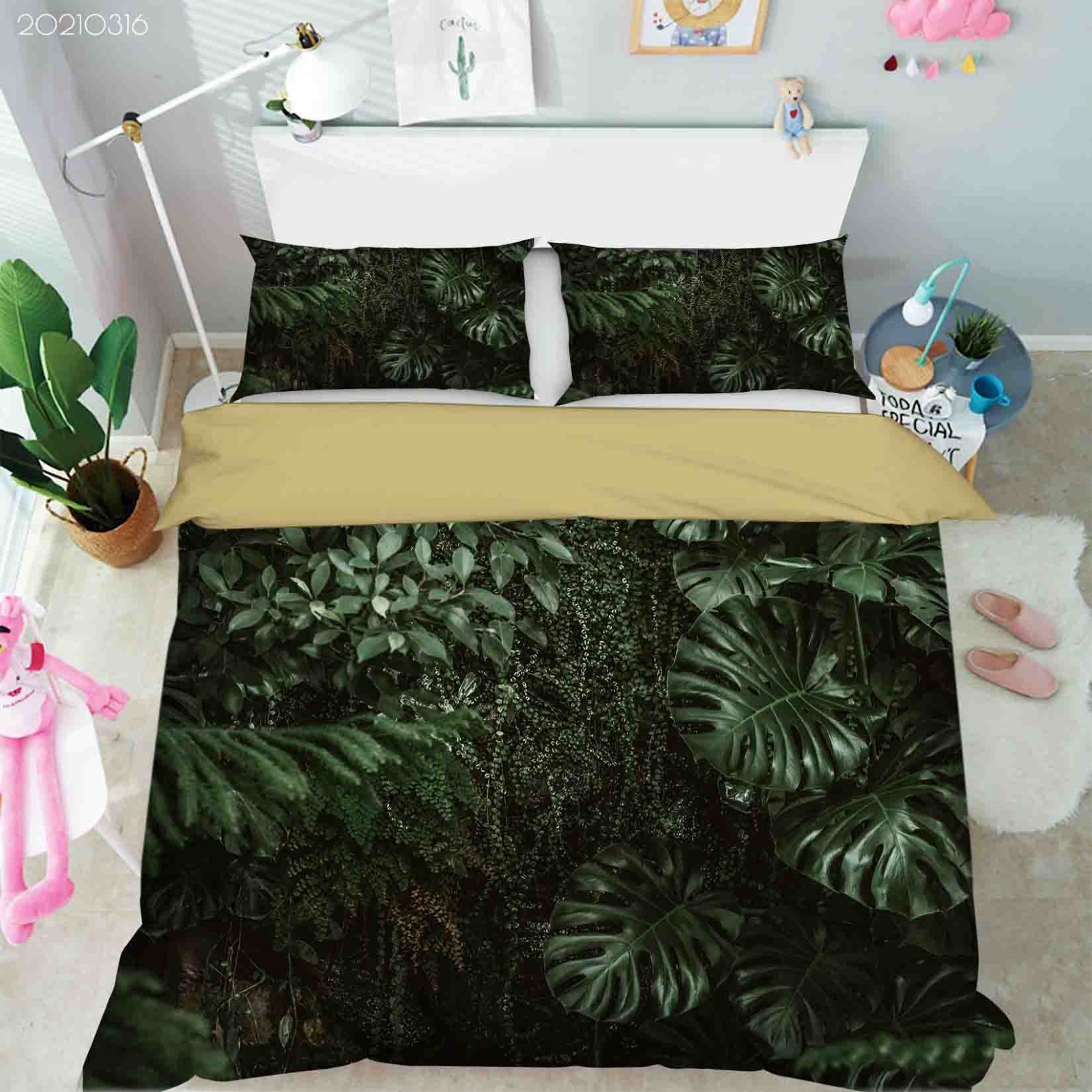 как выглядит 3D Tropical Leaves Cactus Green Plant Quilt Cover Duvet Cover Comforter set фото