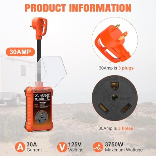 30 Amp RV Surge Protector 14,000J with Smart LED Display Real-Time Orange