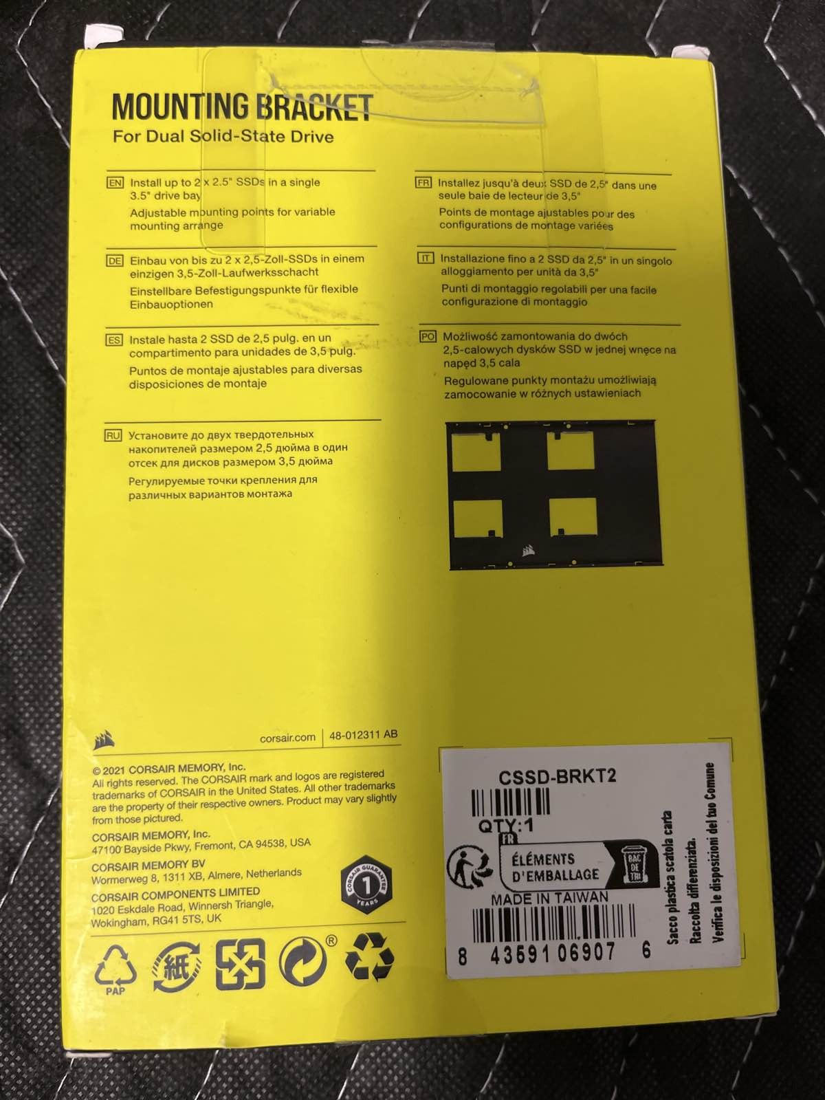 Item Description: Corsair Dual SSD Bracket 3.5" Bay to 2.5" SSD Adapter