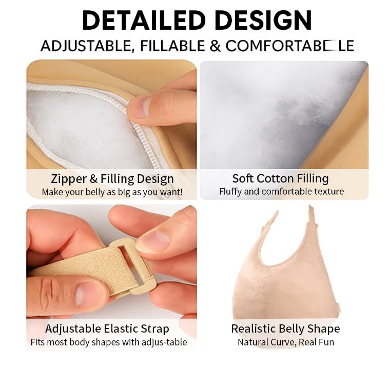 Adjustable Fat Suit Costume Fake Belly Stuffer with Even Size, Flesh color