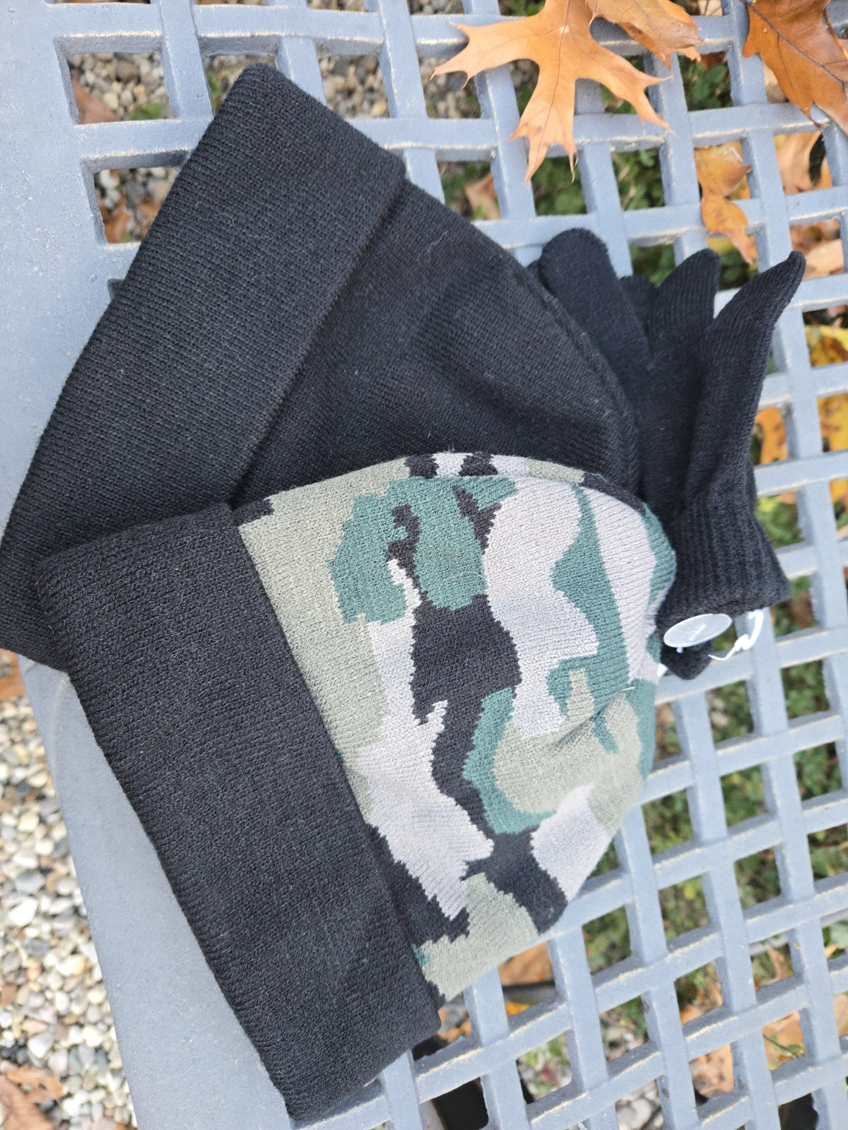 NEW CAPELLI BOYS WARM KNITTED HATS GLOVES ONE SIZE NEW WITH TAG 3 PC SET Camo