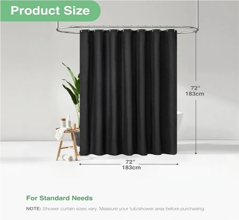 Dynamene Long Fabric Shower Curtain - 72W x 72L Pack of 1 , Black