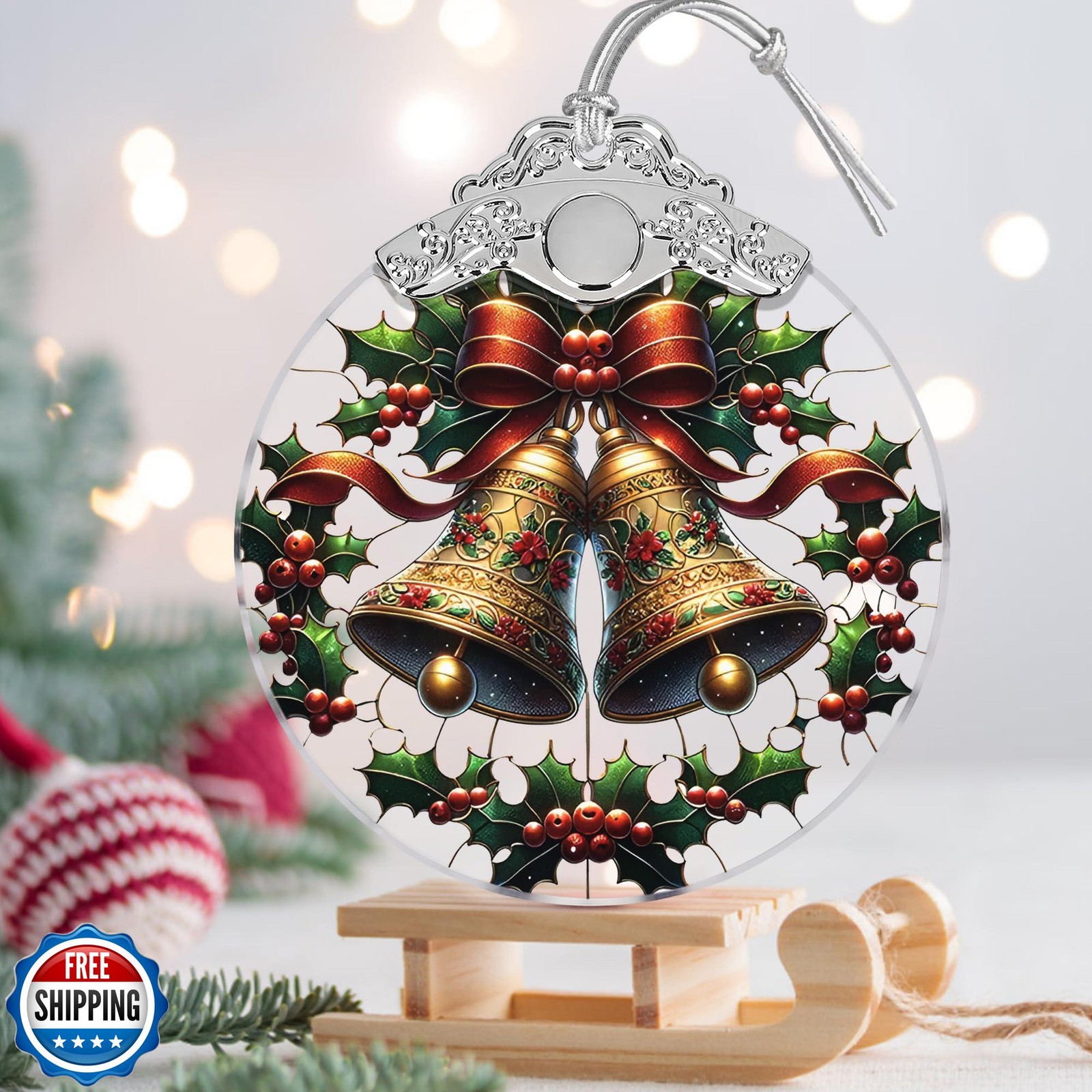 Bell Stained Glass Orament - Christmas Ornament - Christmas Decorations for T