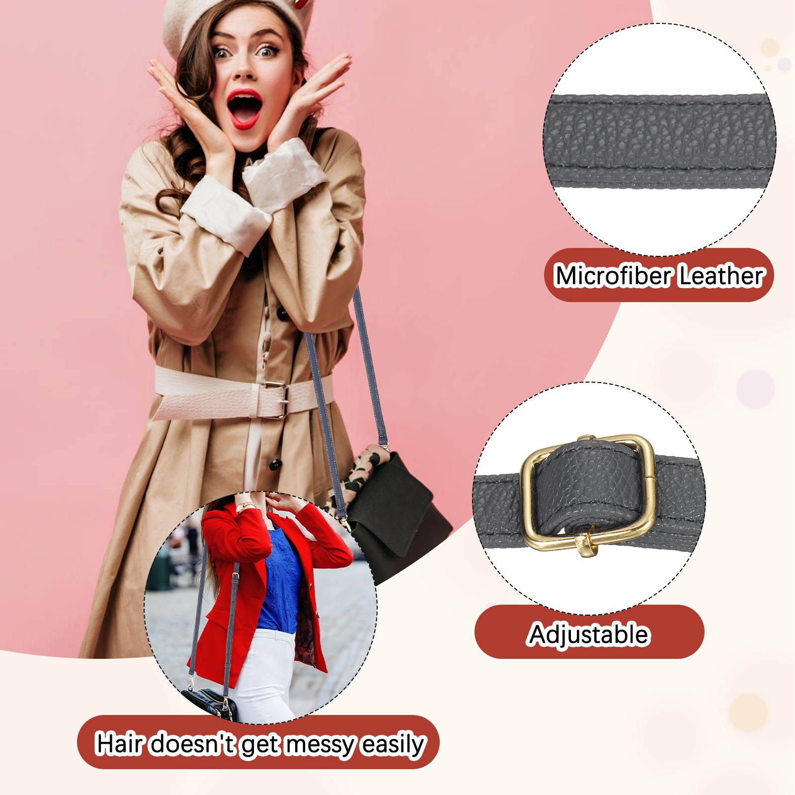 Leather Purse Straps 1Pcs - 51.2 Inch Adjustable Straps - Gray Gold