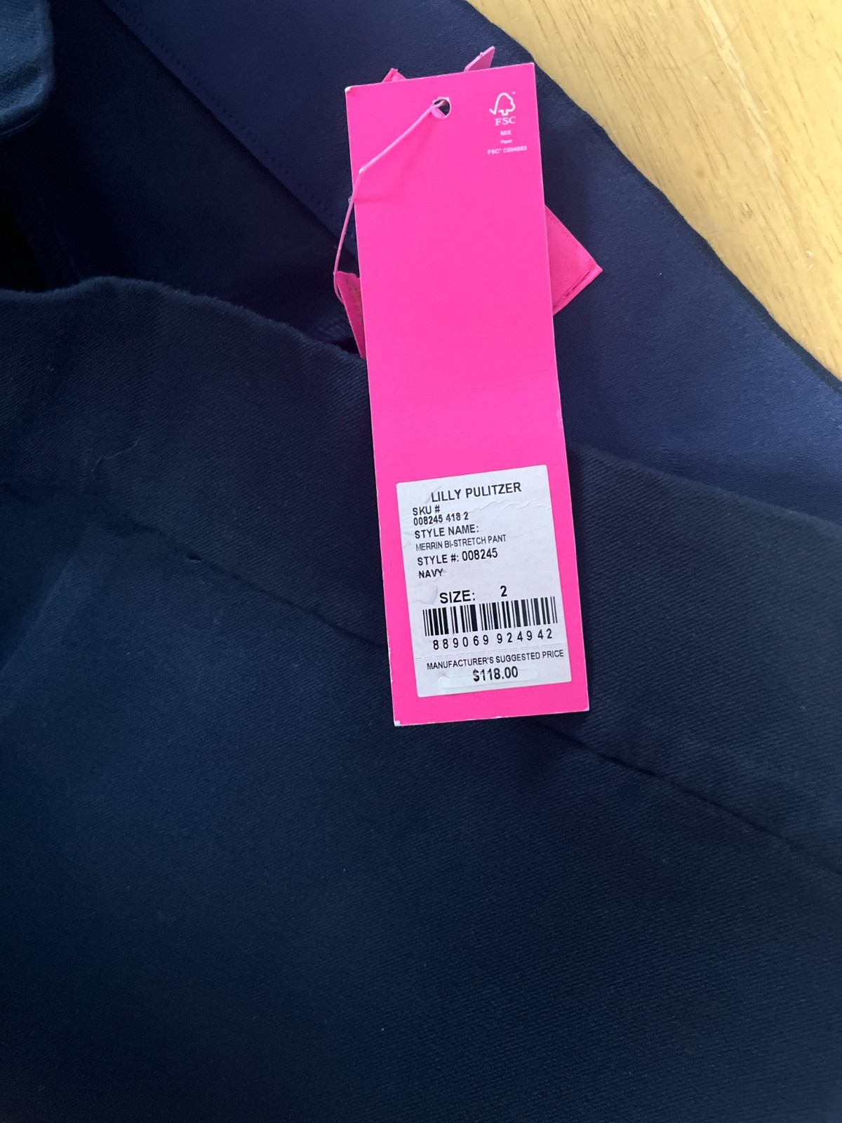 NWT Lilly Pulitzer 118 Merrin Bi-Stretch Pant Navy Blue Women's 2