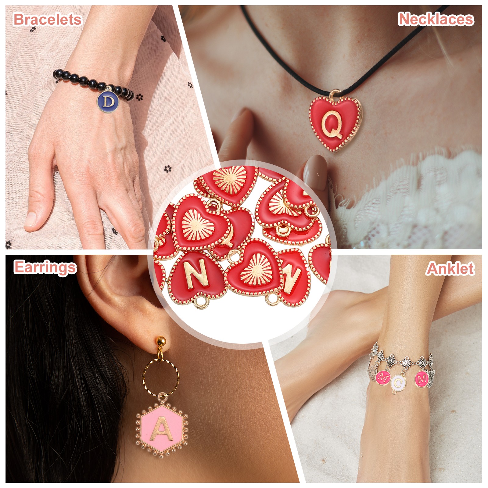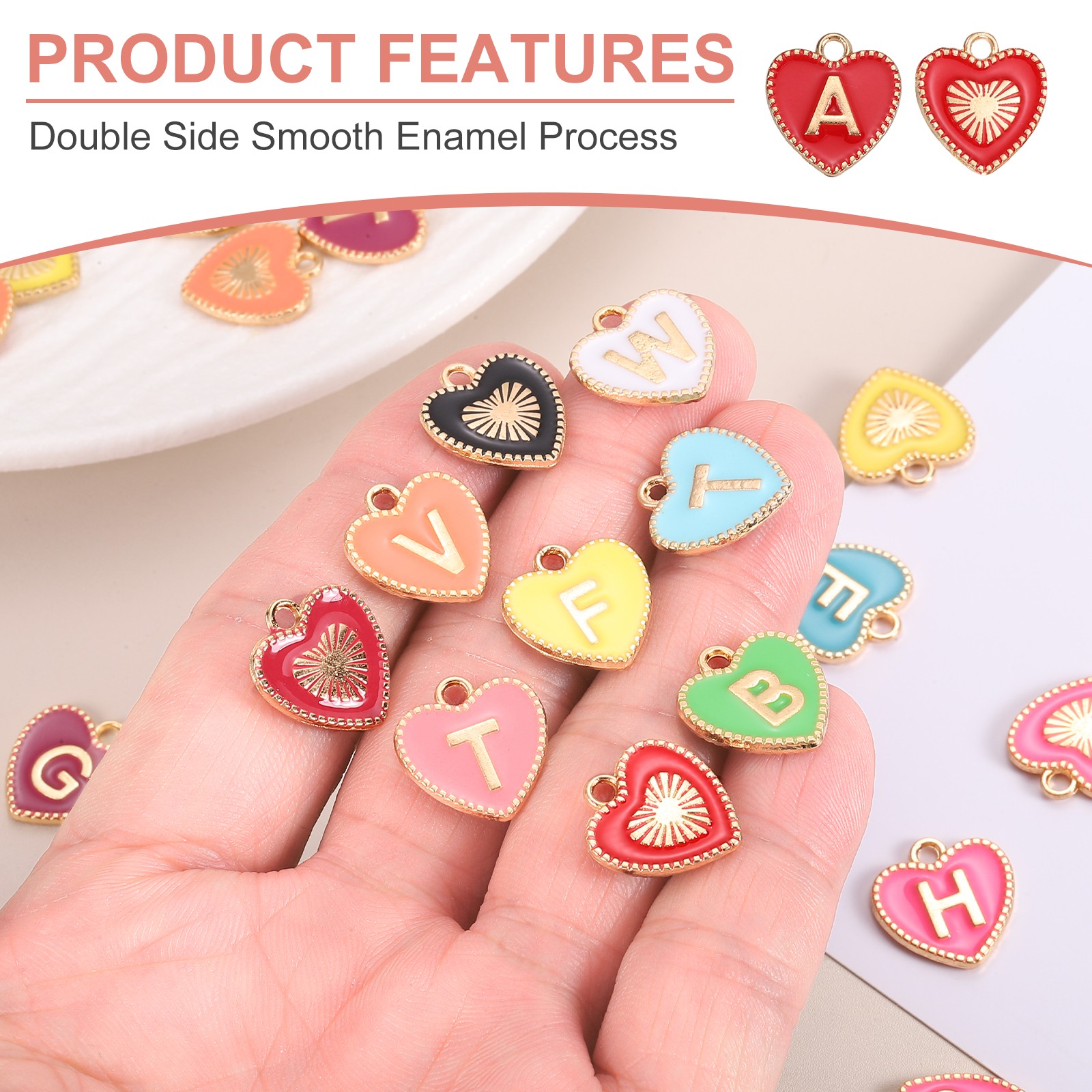 52 Pcs Letter Initial Charm A-Z Heart Letter Charm Red