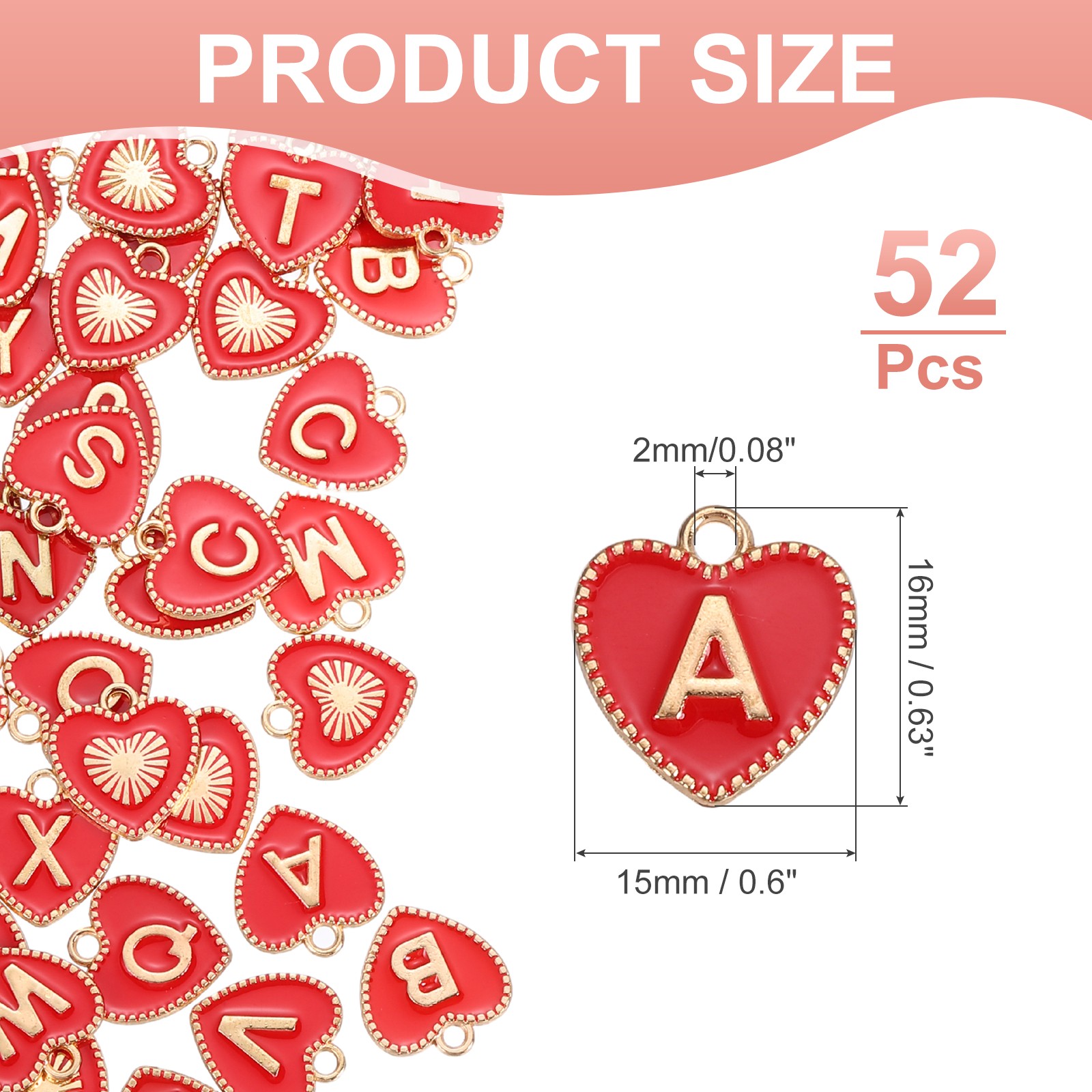 как выглядит 52 Pcs Letter Initial Charm A-Z Heart Letter Charm Red фото