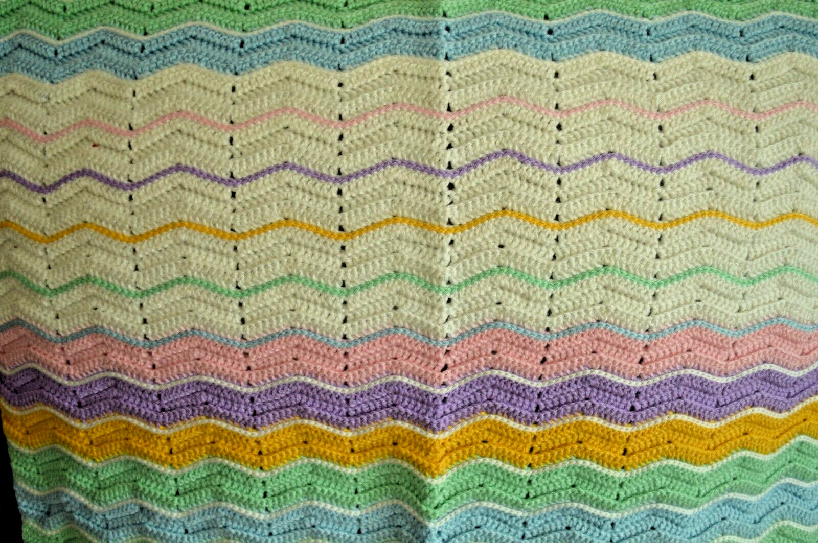 Beautiful Hand Crocheted Pastel Colors Zig Zag Striped Baby Blanket 24 x 34