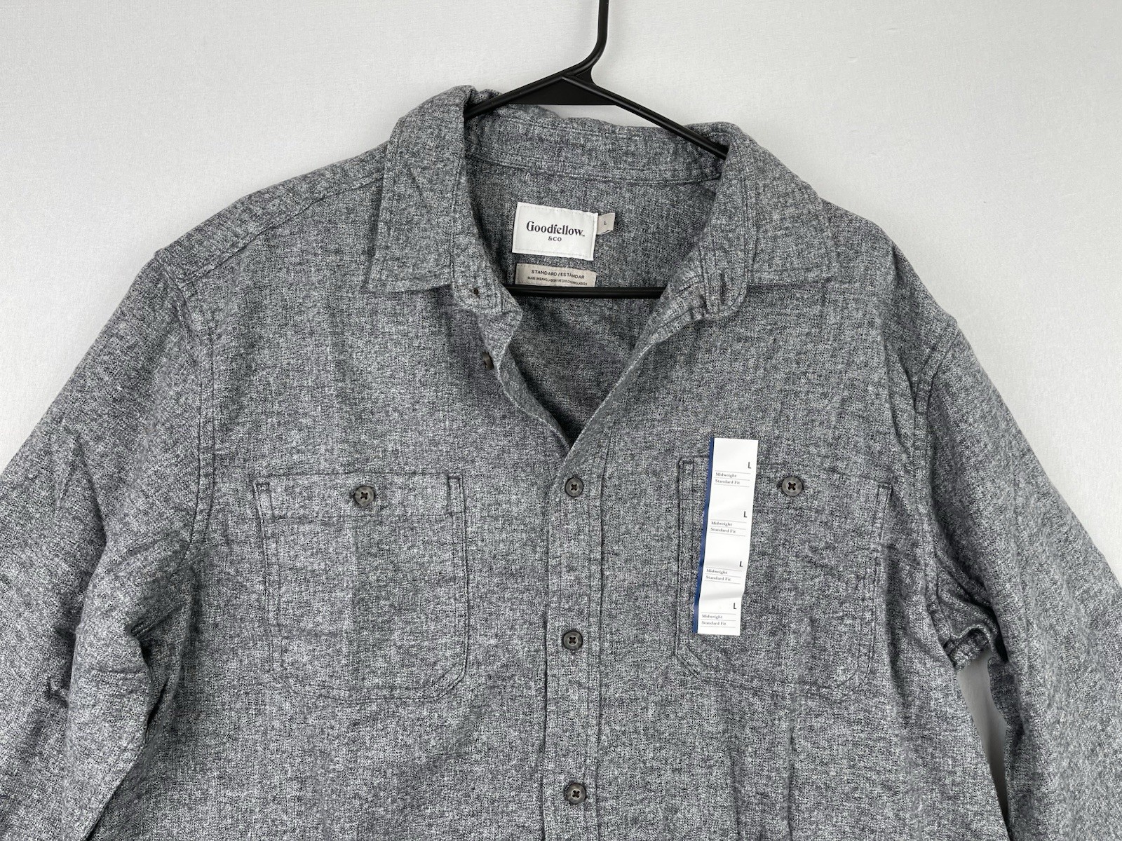 как выглядит Goodfellow Co Midweight Standard Fit Button Down Flannel Shirt Size LARGE фото