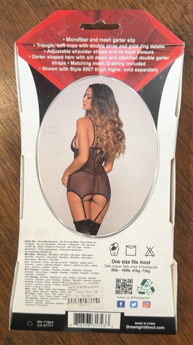 как выглядит Dreamgirl Microfiber Mesh Garter Slip w/Gold Ring Detail 12489 - Eggplant - OS фото