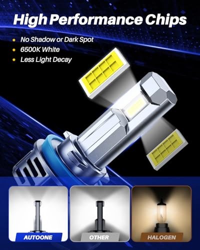 H11/H9 Bulb, No Flicker H11 Fog Lights, 40000LM with Cooling Fan, H8/H9/H11