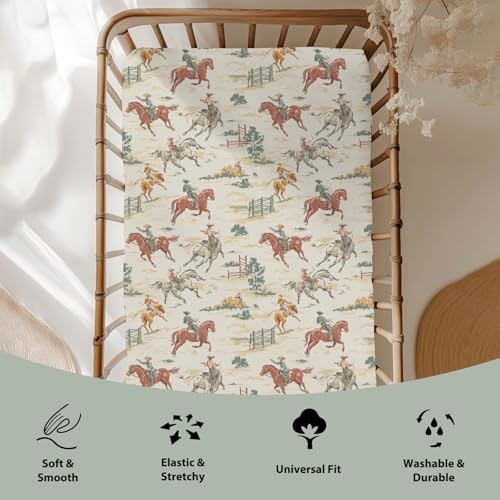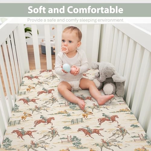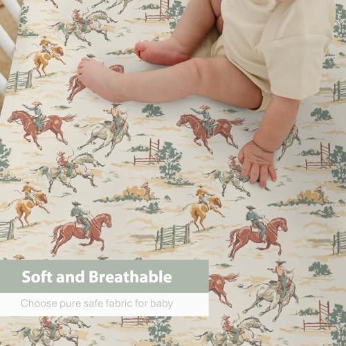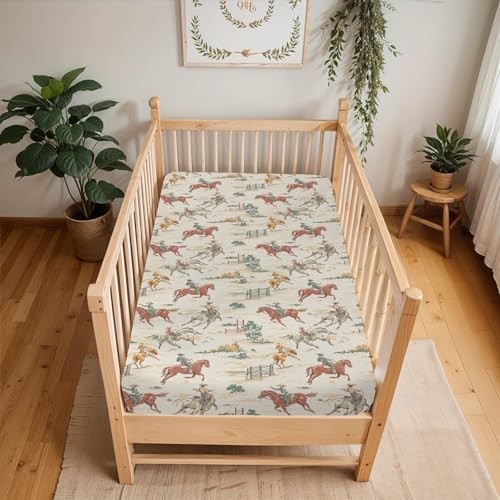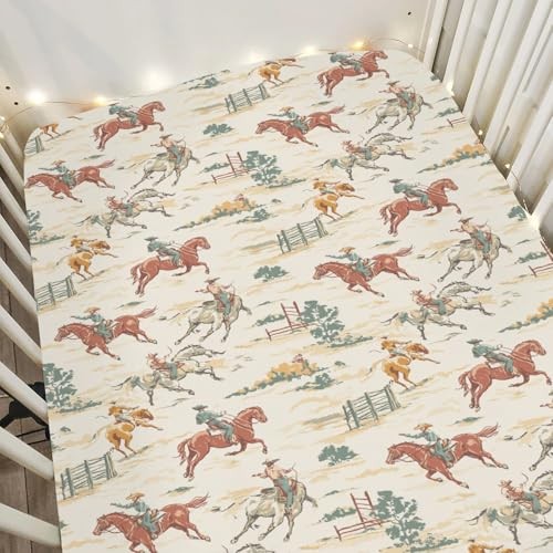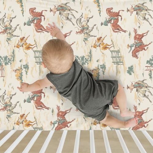Vintage Cowboy Baby Crib Sheets for Boy Girl 28x52 Retro One size Western