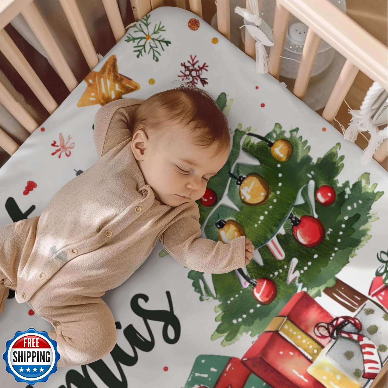 Cartoon Cute Winter Holiday Tree Bear Snowflake Pattern Baby Sheets for Crib,