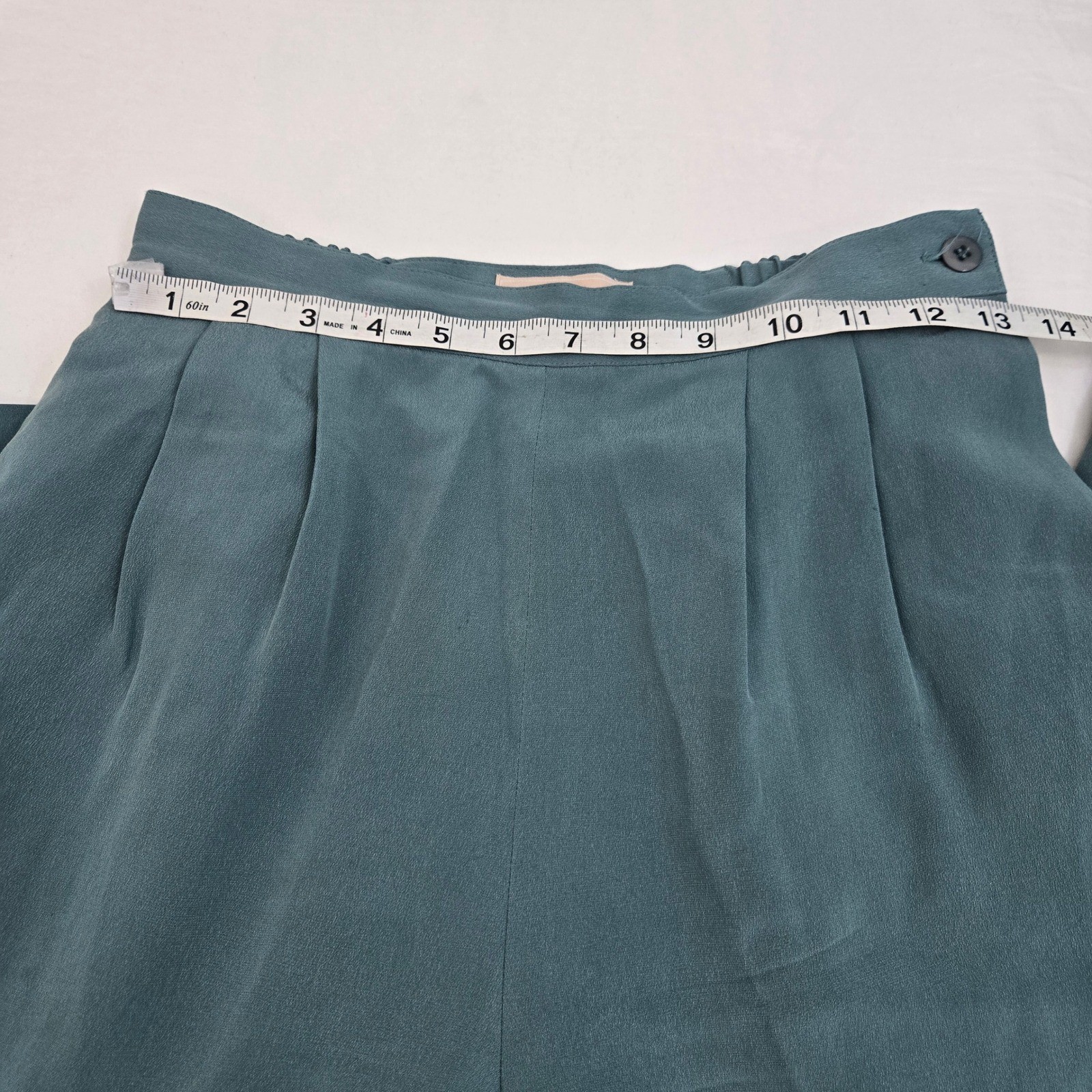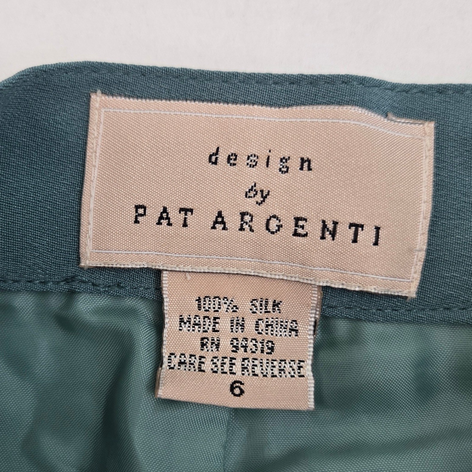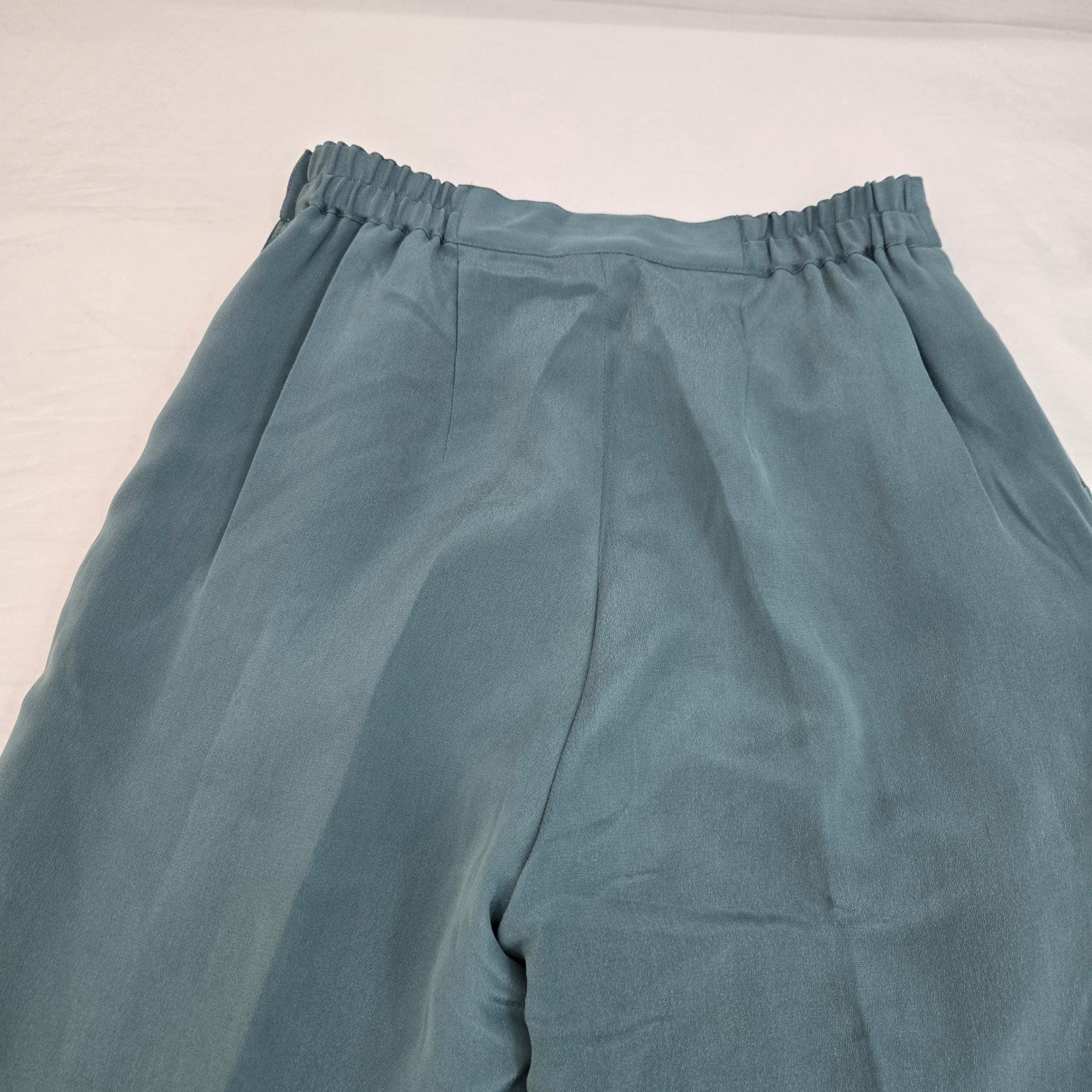 VINTAGE Pat Argenti 100 Silk Pleated High Rise Tapered Trouser Pants 6 Teal