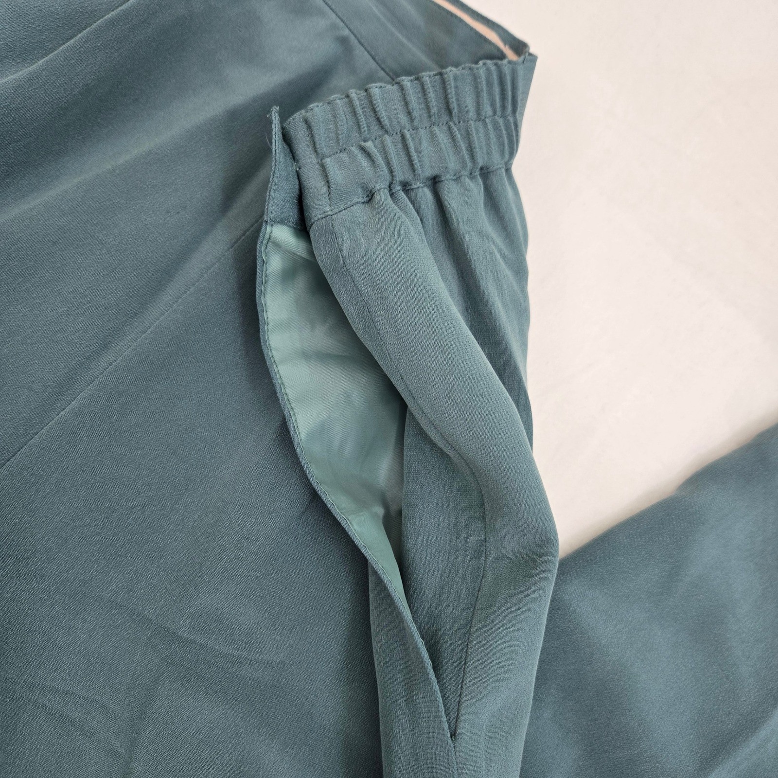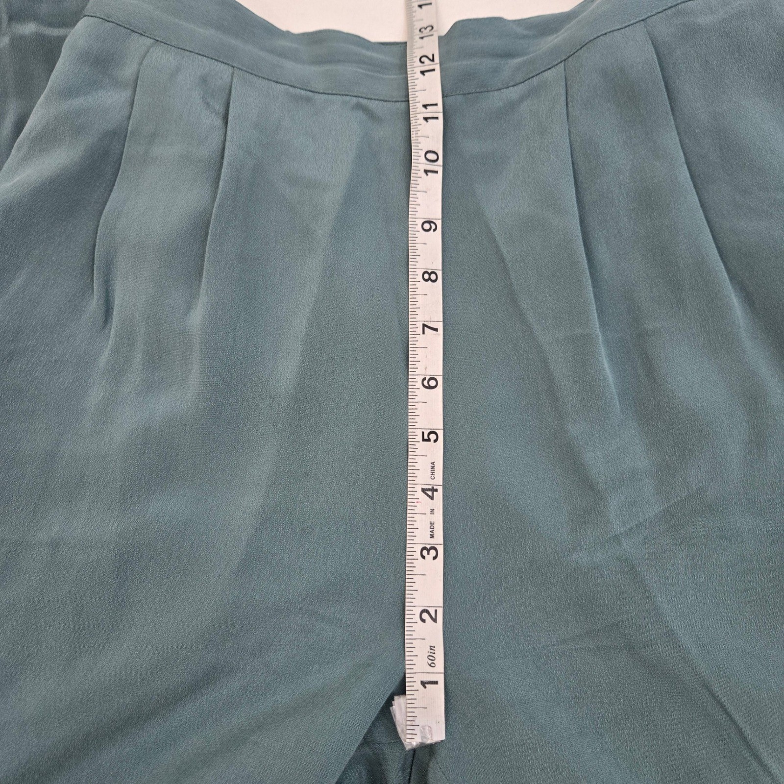 как выглядит VINTAGE Pat Argenti 100 Silk Pleated High Rise Tapered Trouser Pants 6 Teal фото